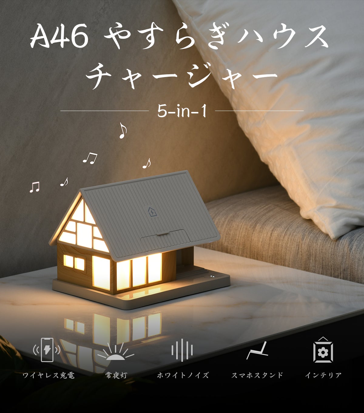 機能だけではない、お部屋に溶け込む愛らしさ。ナチュラルで温もりを感じるおうち型のデザインは、どんなインテリアスタイルにもマッチし、空間にほっこりとした彩りを添えます。単なるガジェットではなく、毎日眺めたくなる、あなたの生活の一部になります。