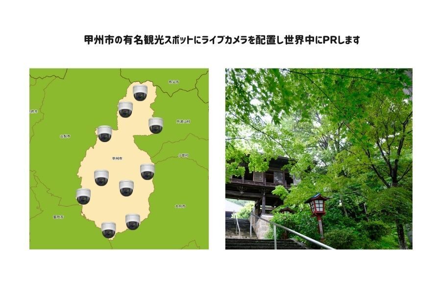 山梨県甲州市内にYouTubeライブカメラを設置し、日本全国や世界中のユーザーに向けて甲州市の魅力を発信します。