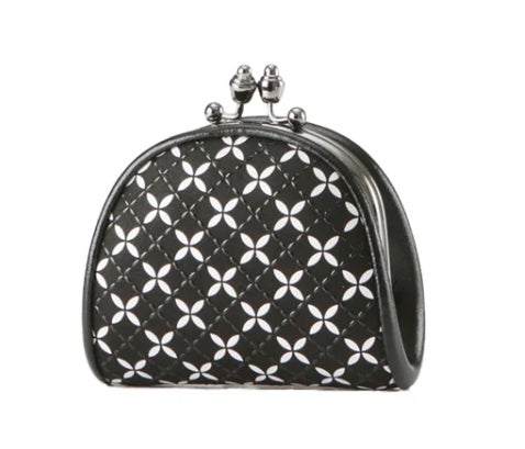 幸せや縁が広がる模様として親しまれる七宝をつなげて、白更紗と黒漆のコントラストで描き、調和によって生まれるかたちが際立つクラシカルな面持ちに可愛らしさが光る、印傳屋定番のがま口タイプの小銭入れです。