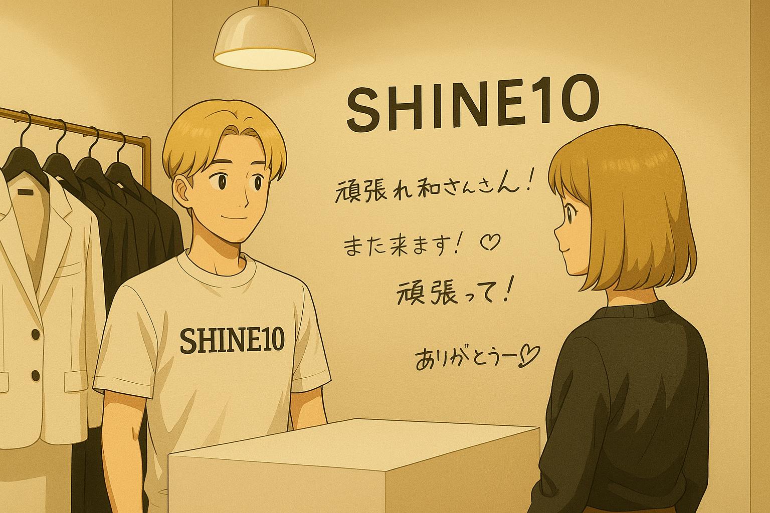 ここに、僕が立ち上げるアパレルブランド《SHINE10》を展示します。
