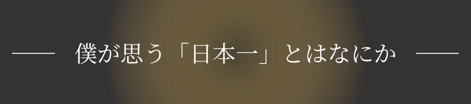 僕にとっての「日本一」は、競争や数字ではありません。