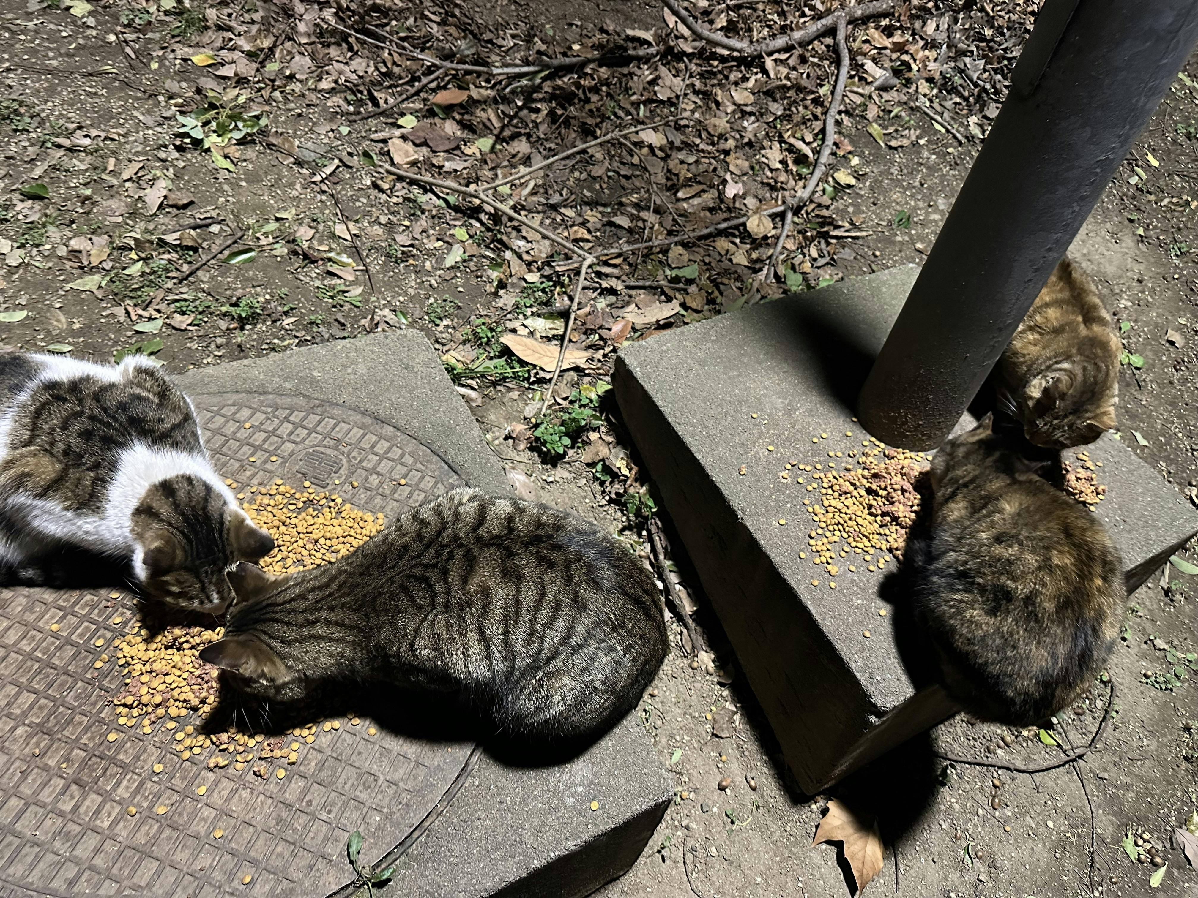 今日は仕事から帰って来て、家の子達のご飯掃除を先にしたので公園の子達のご飯遅くなってしまって置き餌であんまりお話しもできませんでした(-。-;
