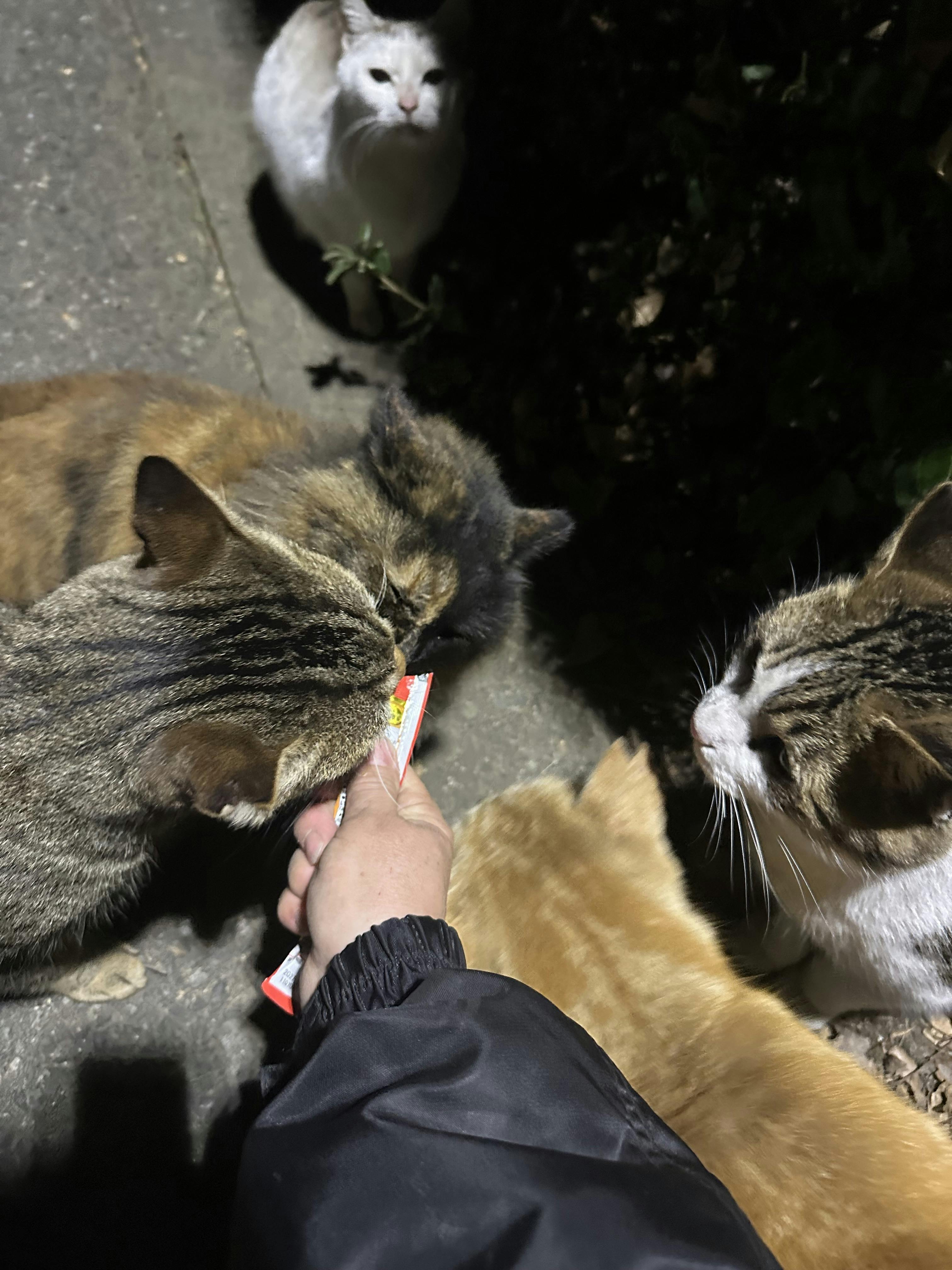 ホームセンターでチュールが30%OFFになってるのを3つ買った(40本入り)ので公園の子達にもたくさんあげました^_^