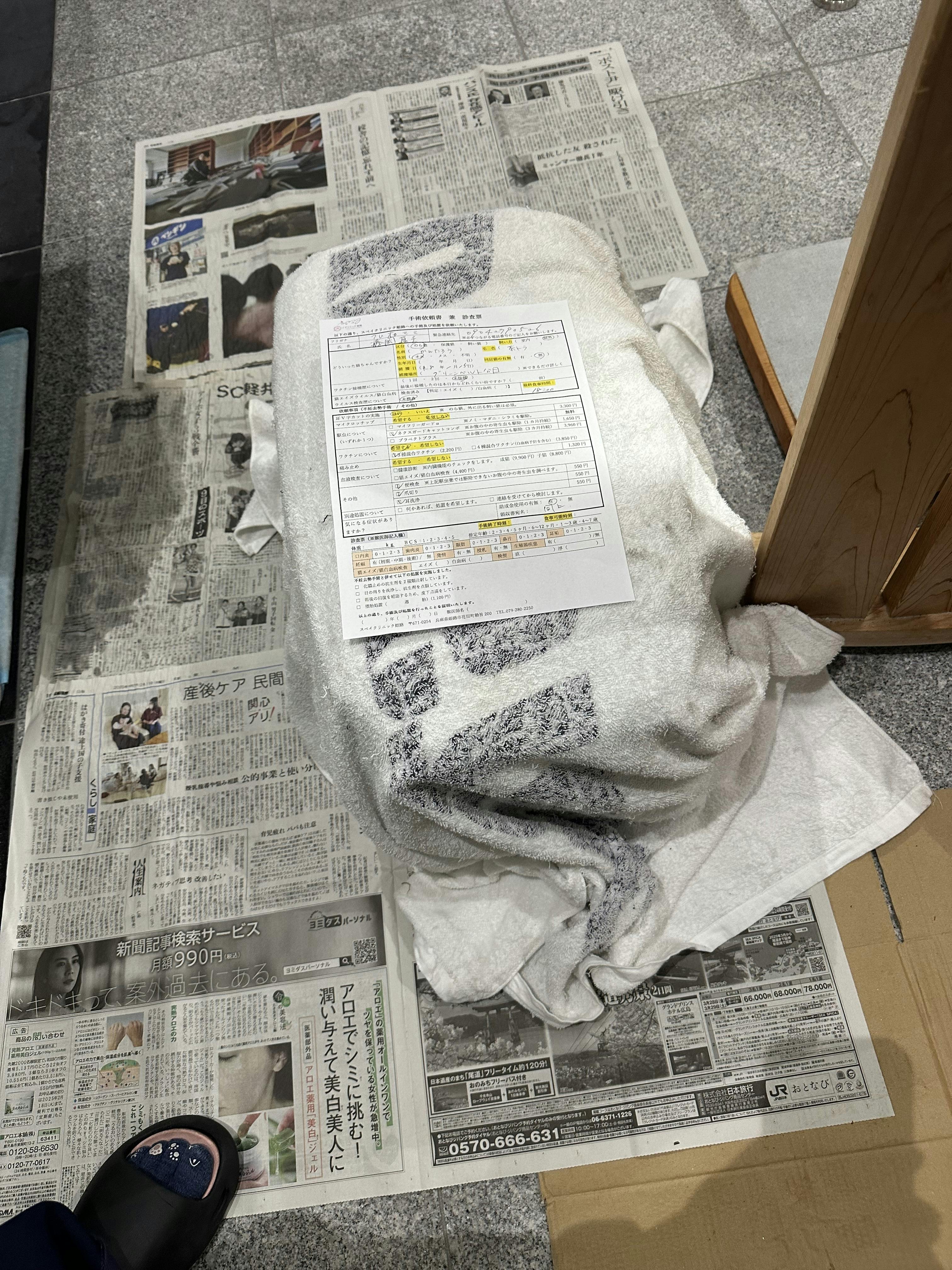 そして昨日の夜に、怪我をしていて保護したかんたろう君を病院の前泊預けで預けて来ました。