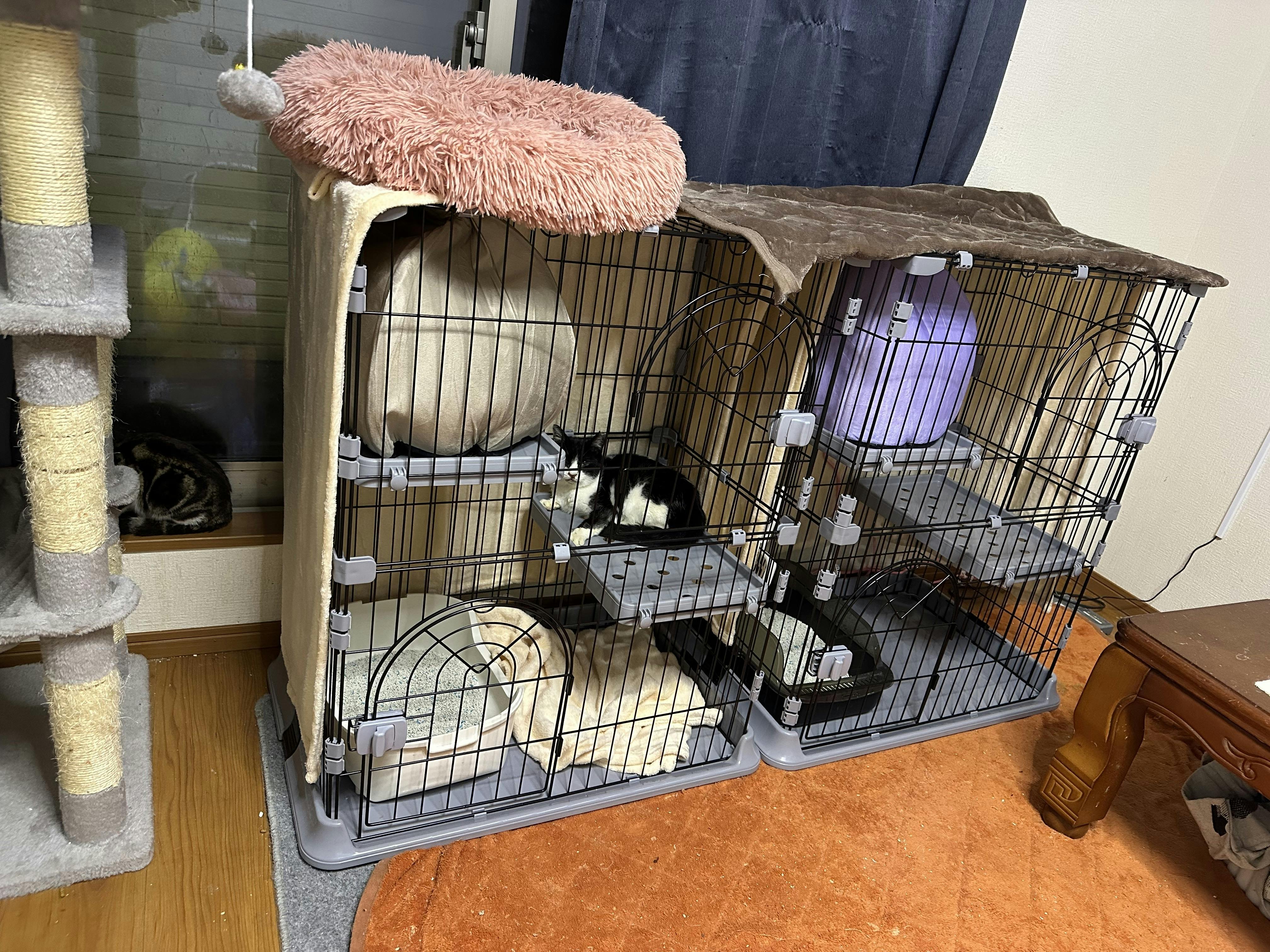そしてそして、2階の保護部屋の子達の中の2匹がまだ風邪症状が悪いのでケージを用意して隔離