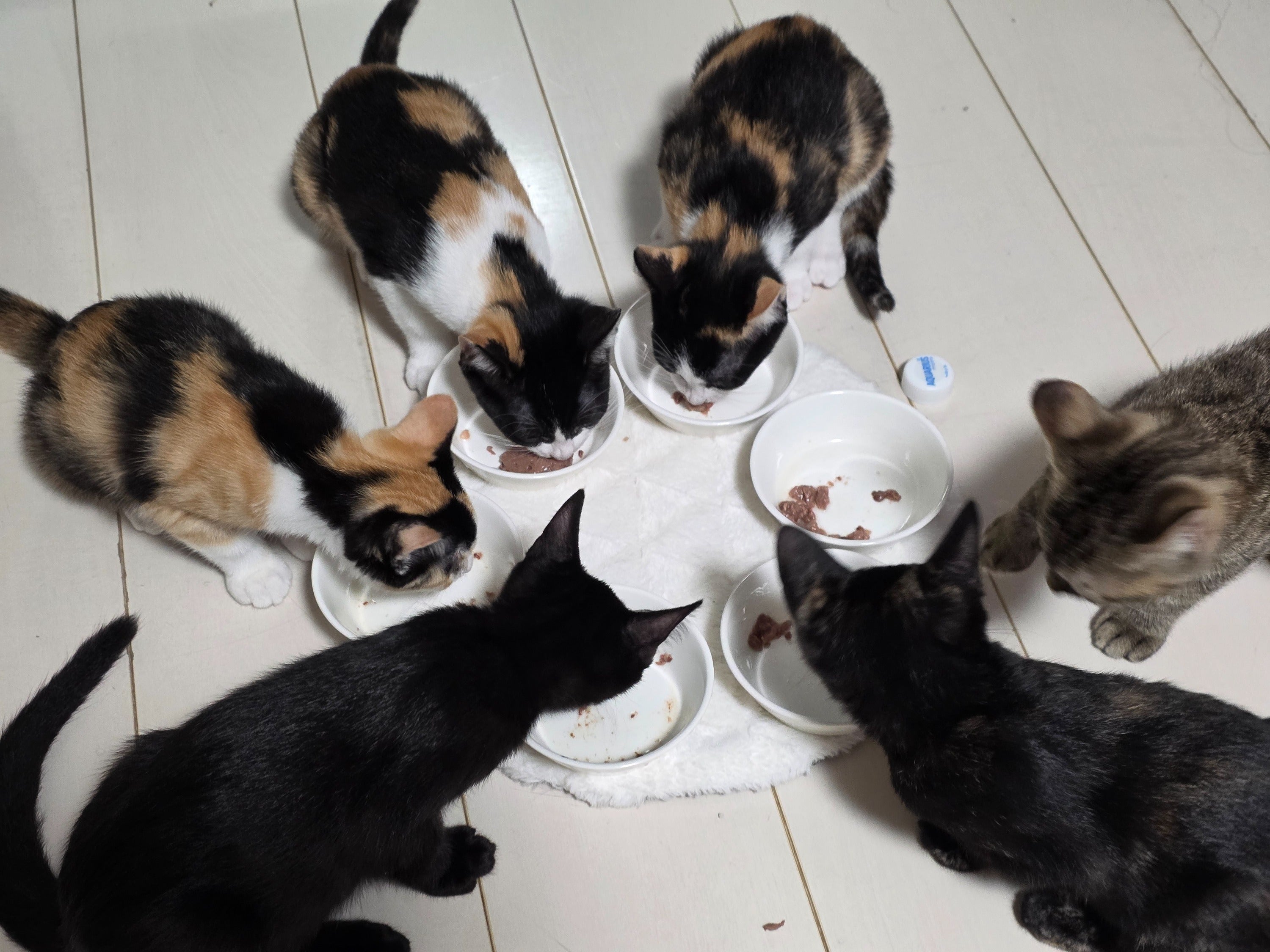 今現在4人家族、6匹の猫と生活しています。地域猫4匹+赤ちゃん猫三匹のごはん、水をあげています。ふつうに生活するための(猫)のご飯代、猫砂代、病院代など協力していただきたいです。避妊、去勢、譲渡を今後も行っていく予定です。行き場のない、ねこちゃんをほっておけないです。