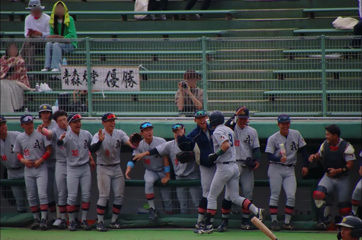 青森大学硬式野球部は、北東北大学野球連盟1部リーグに所属し、これまで数多くの実績を積み重ねてきました。チーム全員が同じ方向を向き、力を合わせて練習や試合に取り組み、互いに支え合いながら成長してきました。
