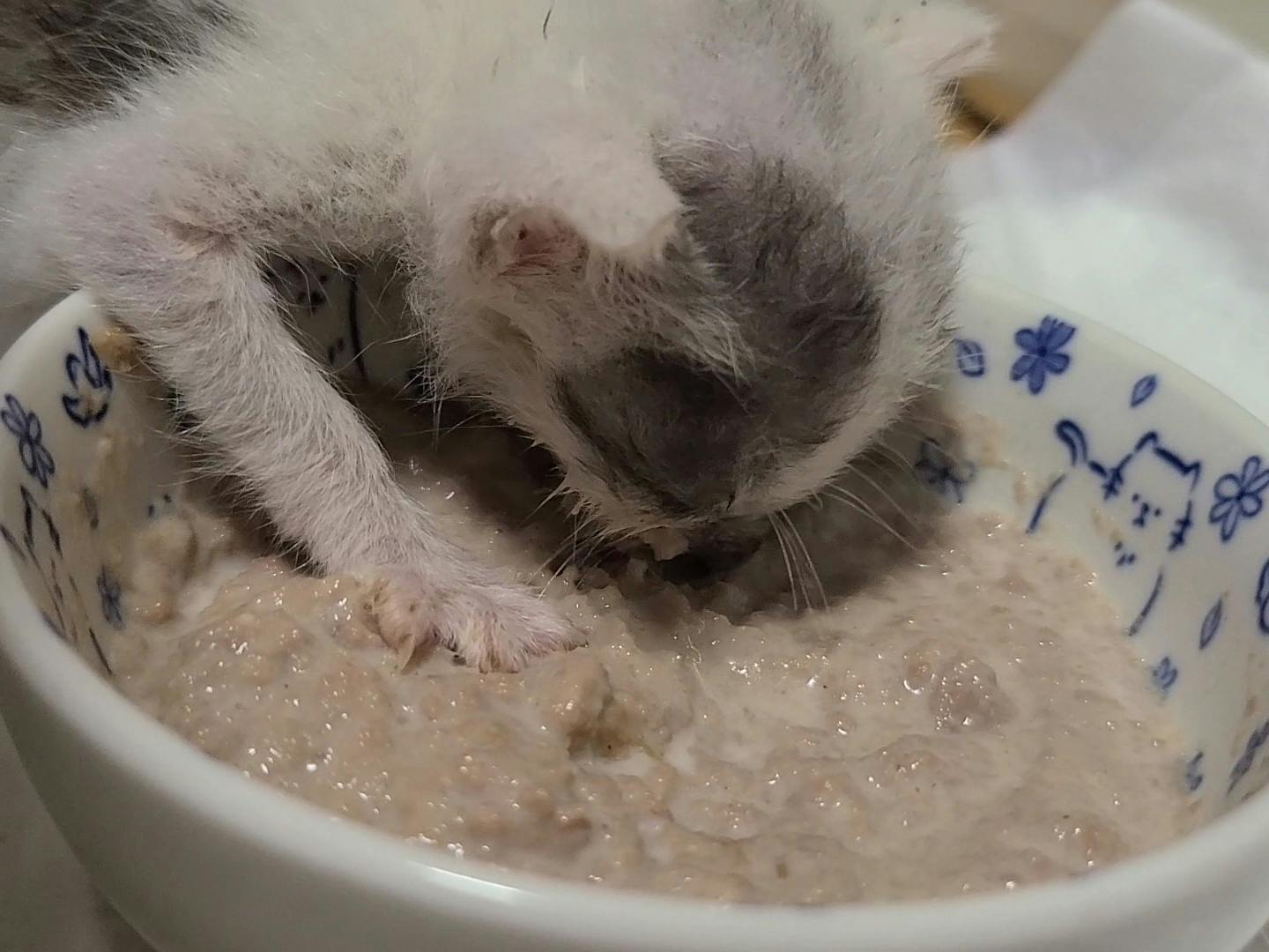 マザー&ベビーキャットのムースの液体部分の味が好きで、ミルクと混ぜると口の周りをべちゃべちゃにしながら美味しそうに飲んでいました。