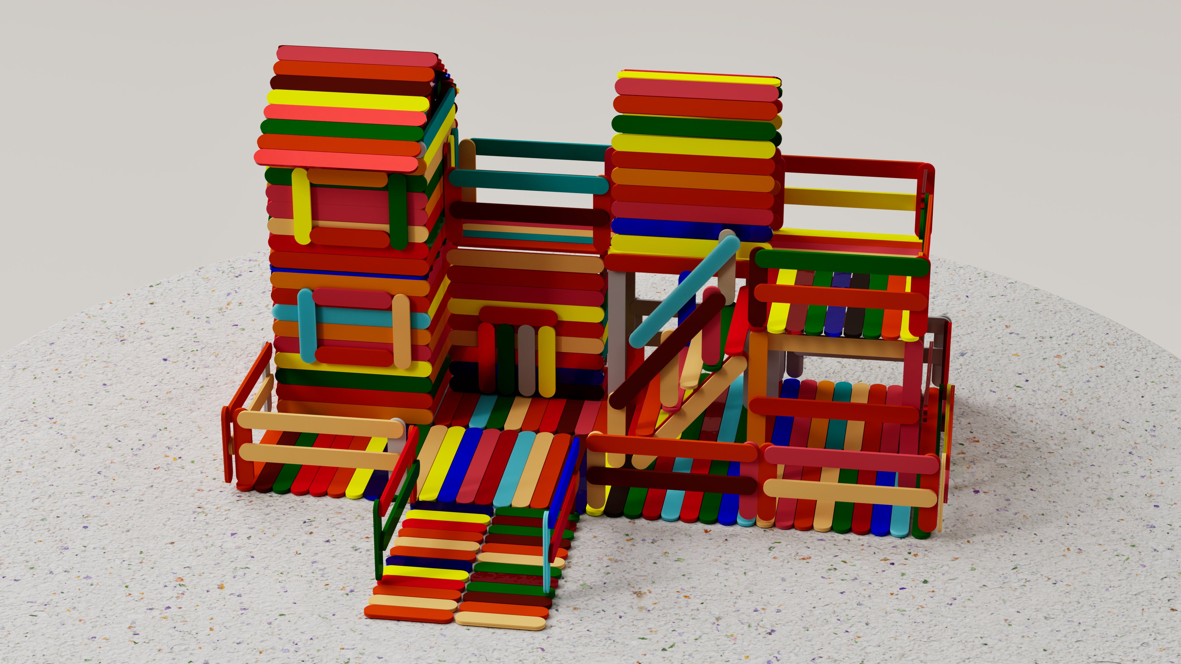 ・動画で作った事のある『アイス棒を使ったお家』を接着剤なしで簡単に作れる。