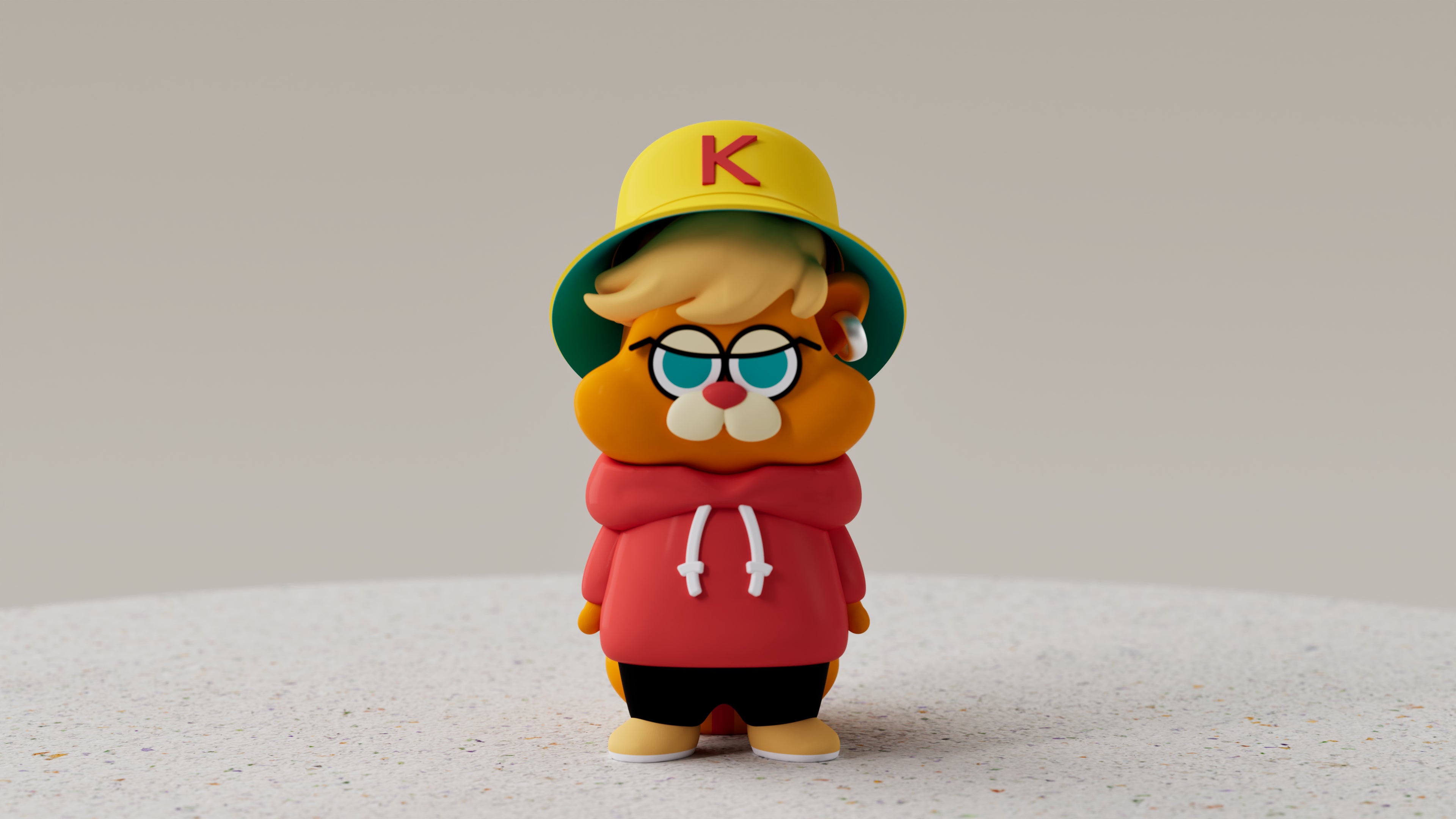 きょんのちっちゃくて、すばしっこいイメージにトレードマークのバケットハットを被らせた、要素たっぷりのキャラクターを3Dプリンターで、立体的に卓上サイズのフィギュアに誕生させます。