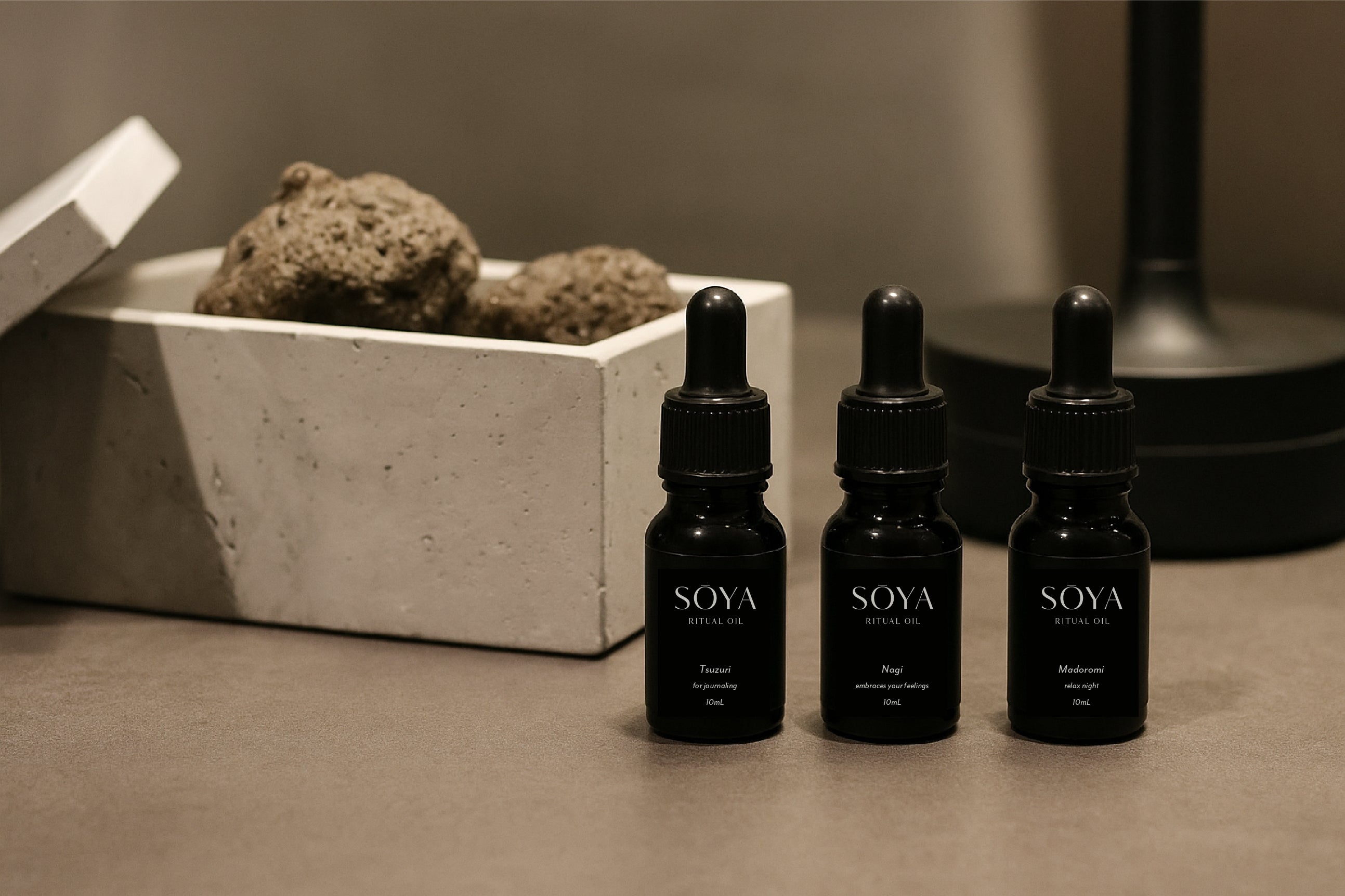 今回のリターンでは、SŌYAオリジナルデザインのアロマストーンセットもご用意しました。