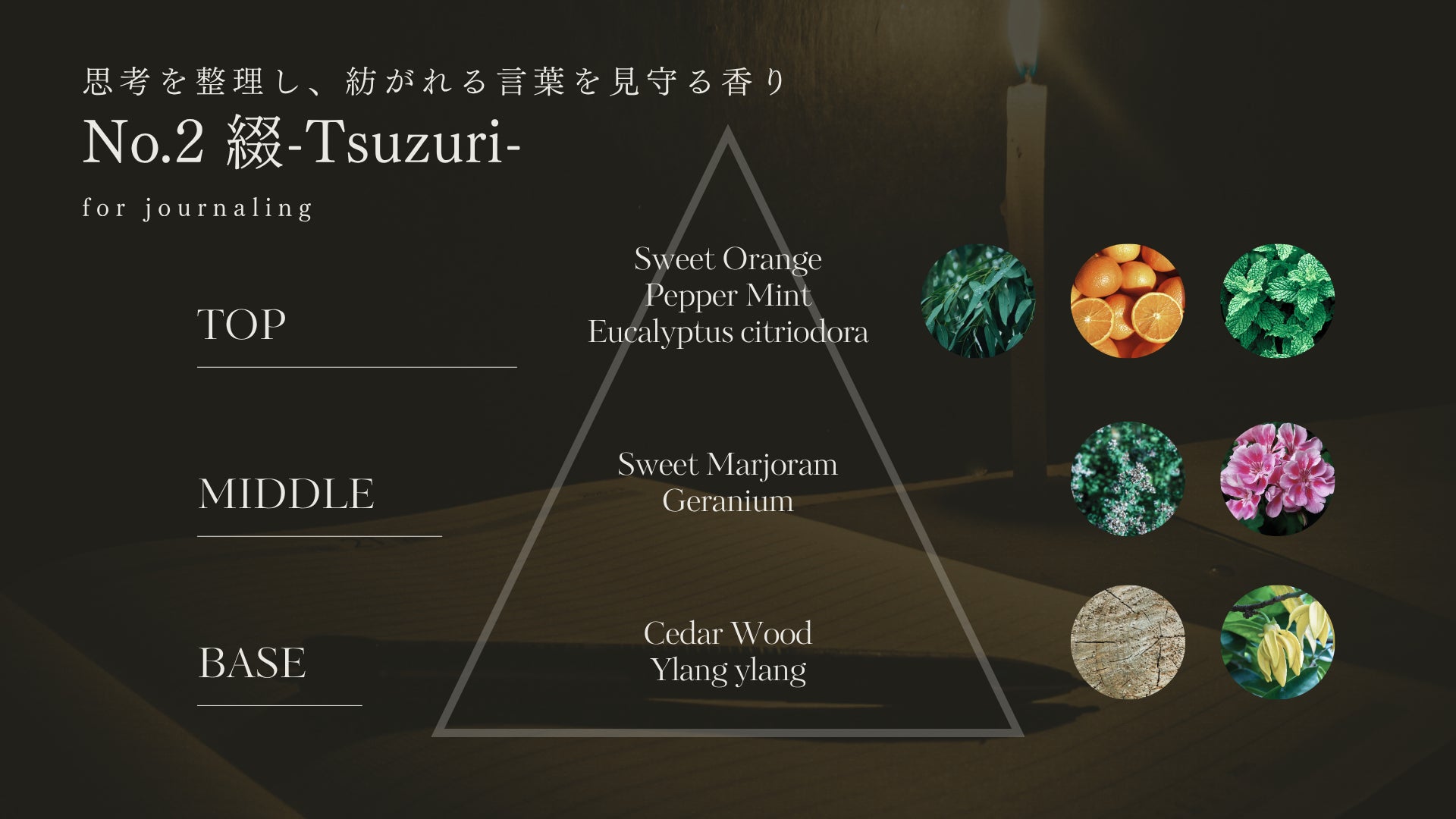 ジャーナリングや内省の時間を深め、思考を整理したい時におすすめのブレンド。