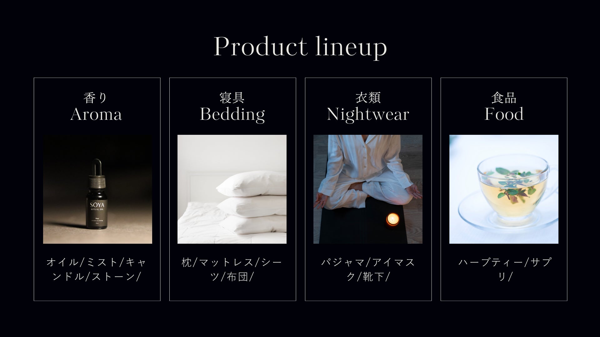 だからこそ、幅広いラインナップで一人ひとりの眠りや夜の時間に寄り添っていきたいと考えています。