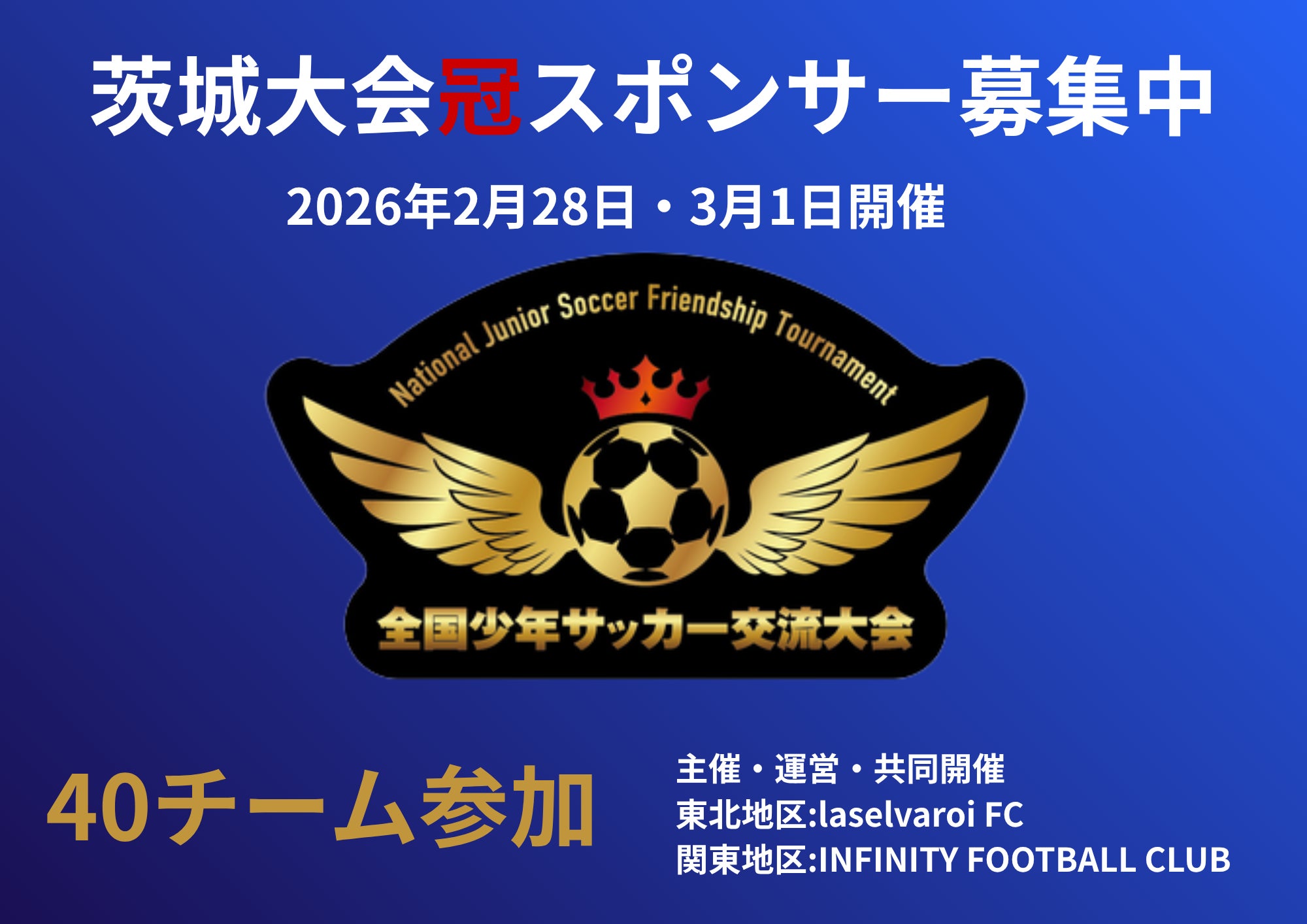 2026年2月28日.3月1日開催予定の茨城大会タイトルへの企業名冠表記(例:「貴社名Presents 全国少年サッカー交流大会」)