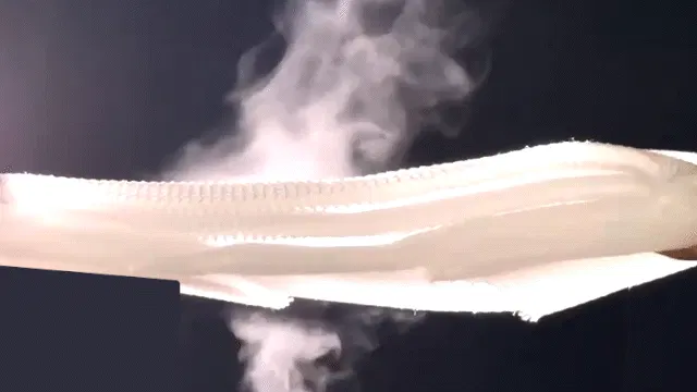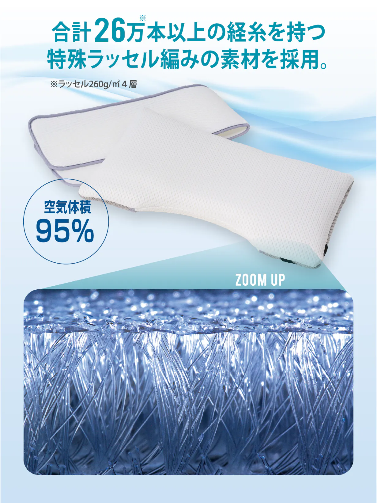 中材は空気体積比率95%のエアレイヤー構造に、26万本以上の経糸(たていと)。