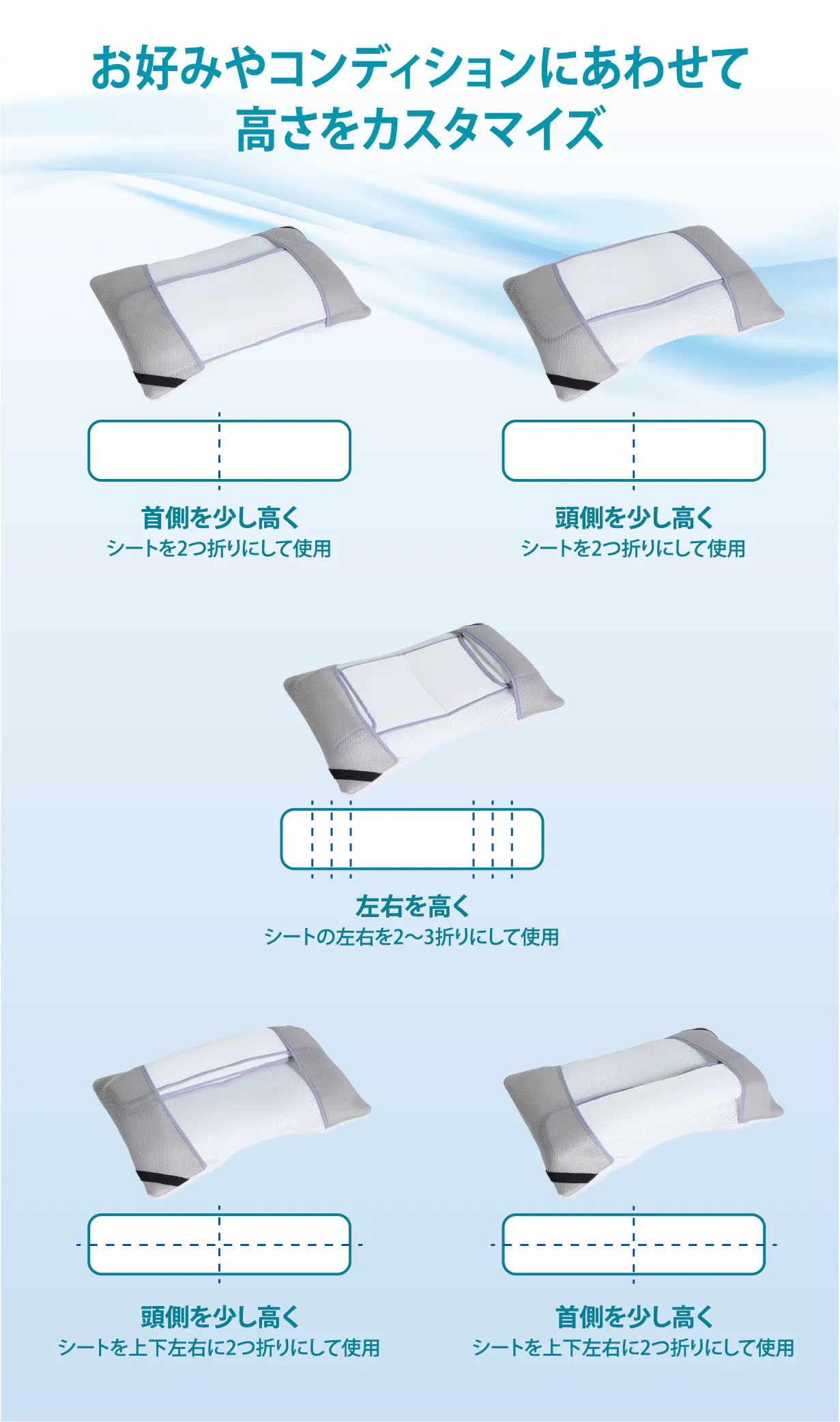 自分に合わせてカスタマイズできる、新しい“間違いのない”枕のカタチです。