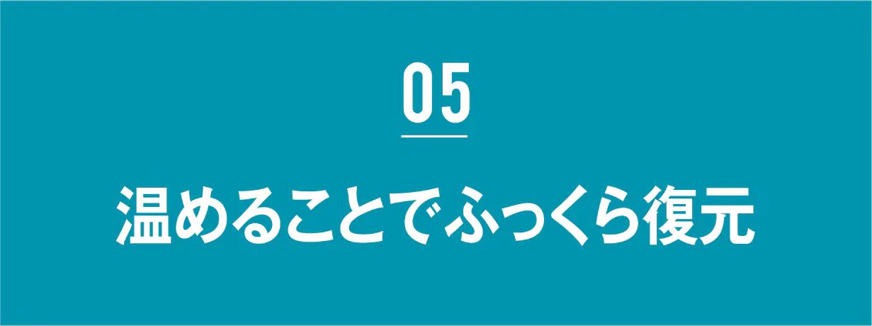 お湯を使わなくても、ドライヤーや布団乾燥機の温風でふっくら復元。