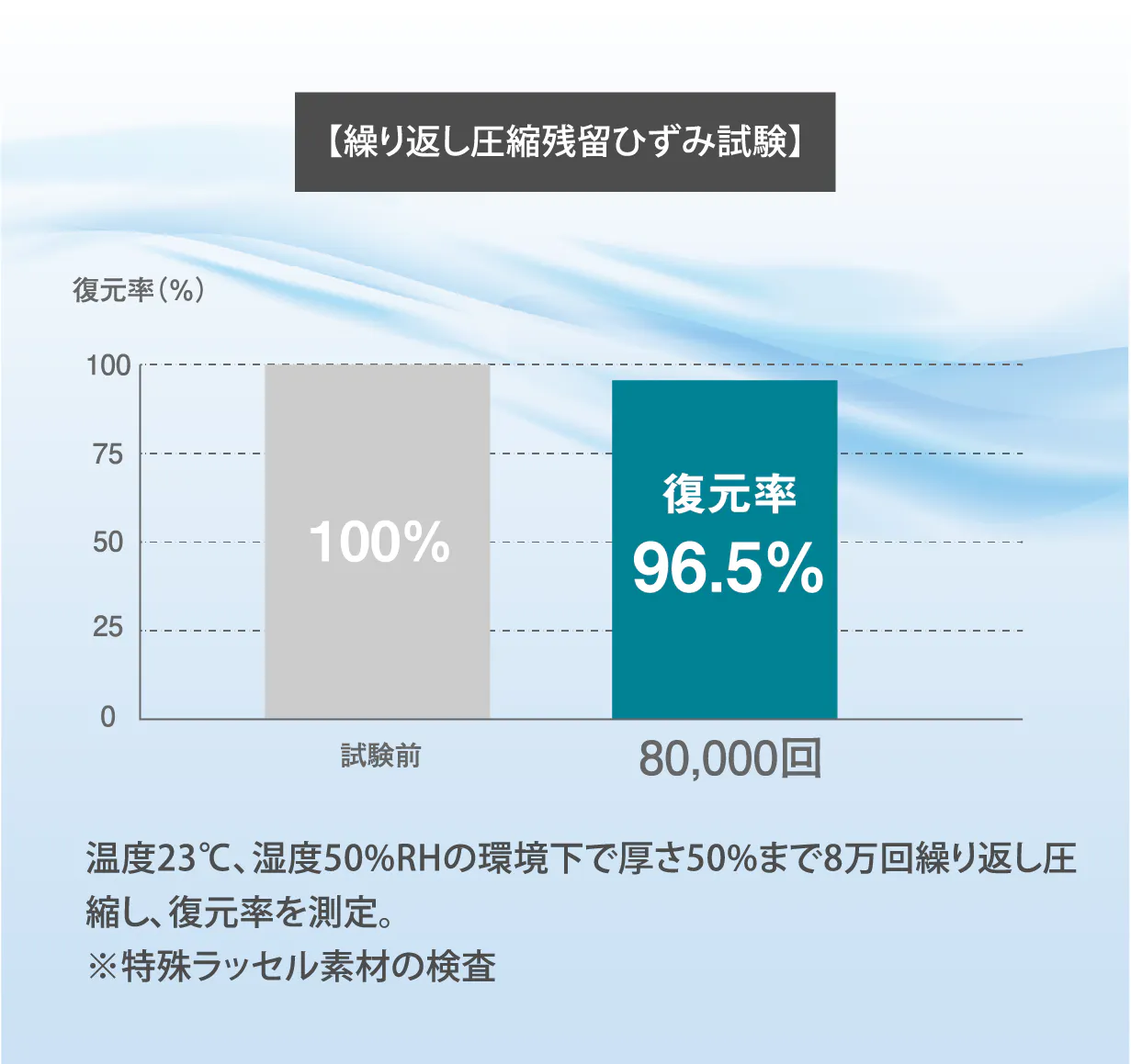 圧縮テストでも、8万回の圧縮試験で高い復元率を記録。