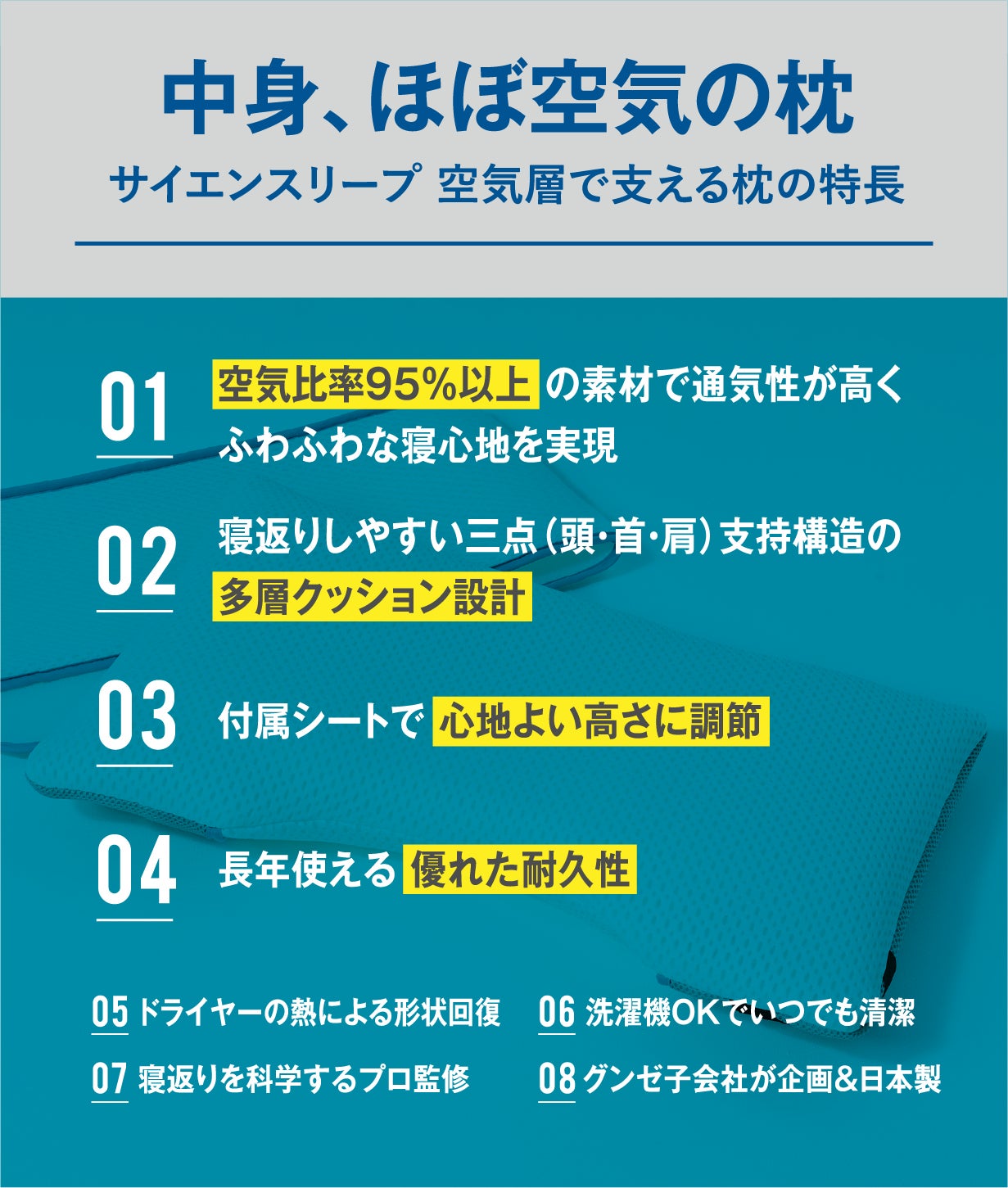 サイエンスリープ ピローは“通気性”に着目しました。