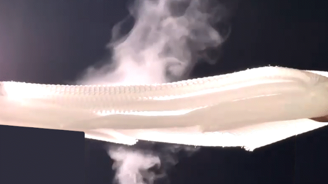 中材は空気体積比率95%のエアレイヤー構造に、26万本以上の経糸(たていと)。