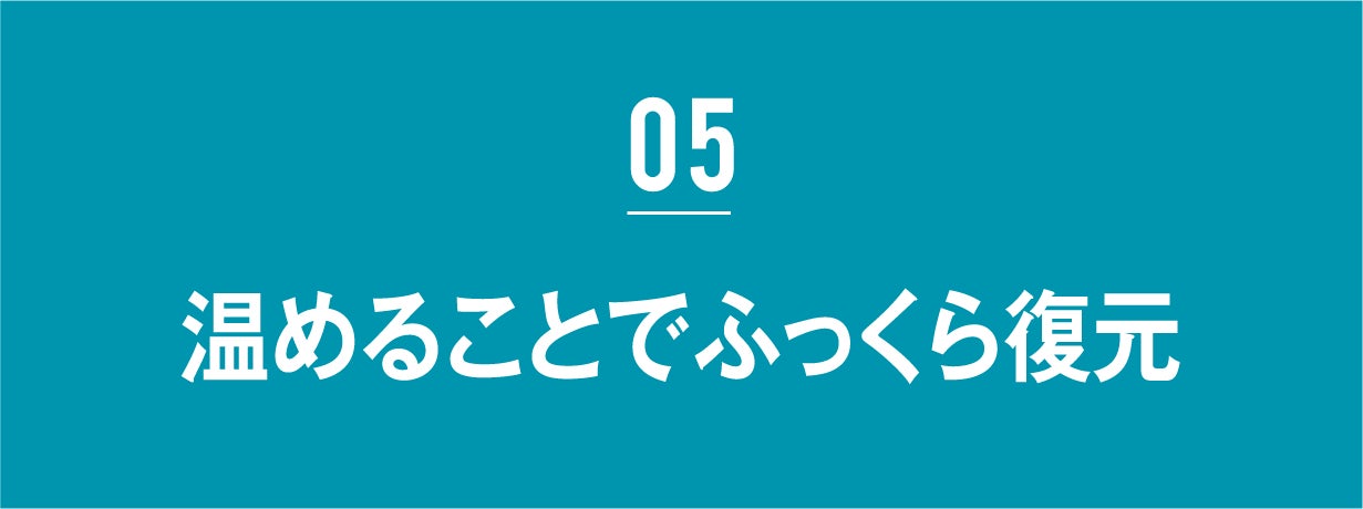 お湯を使わなくても、ドライヤーや布団乾燥機の温風でふっくら復元。