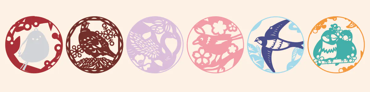 「鳥」と「花」がモチーフの、ほっこりかわいらしい切り絵のペーパークラフトです。