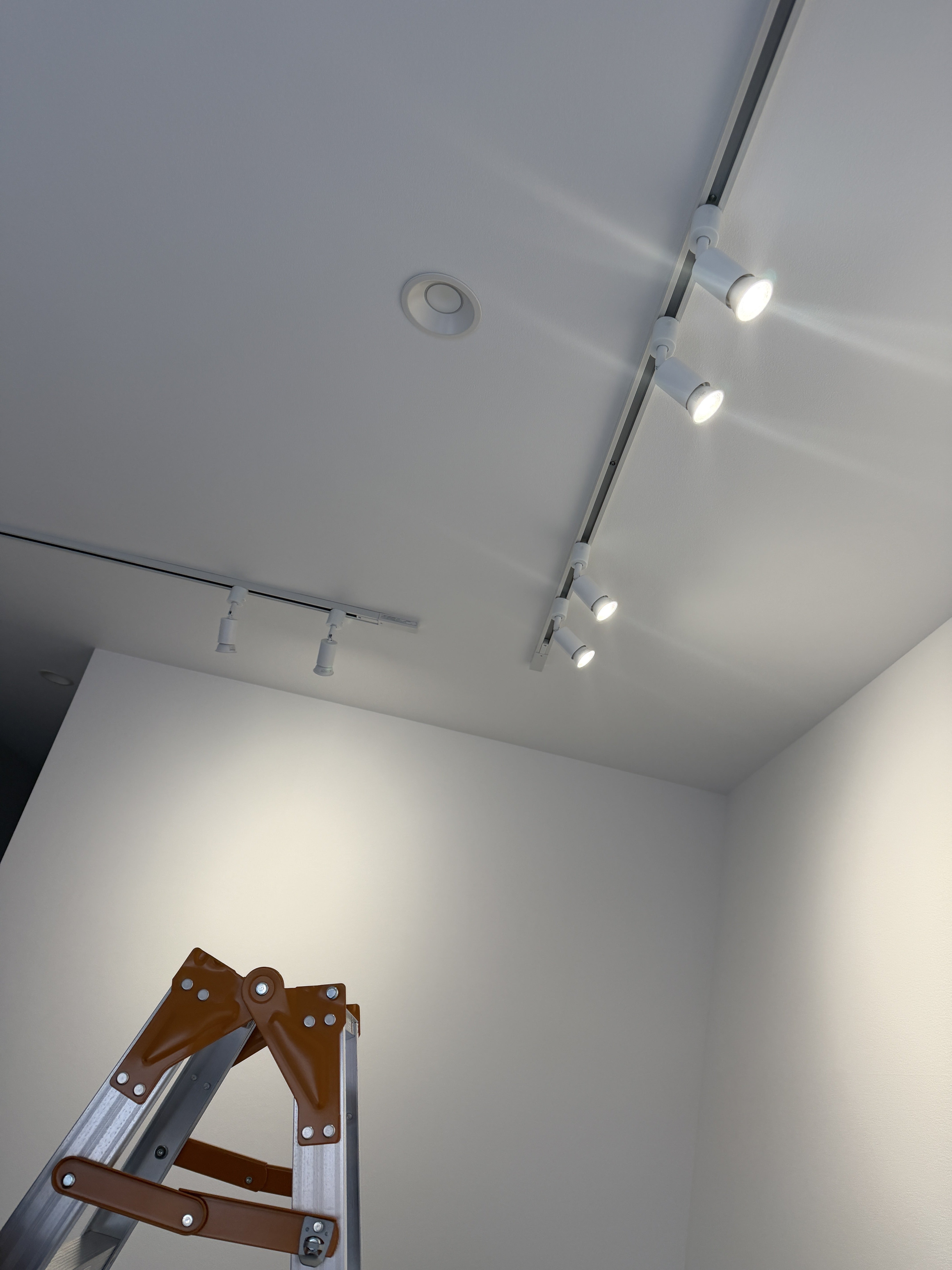 そして本日、リクエストの1つであるライティングレールにスポットライトがつきました!(もちろん自分でつけました!手動で位置の調整ができます♪)