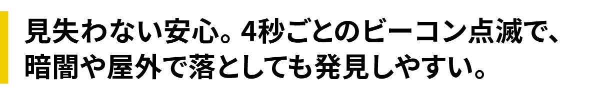 A: 主に緊急時の信号や護身用です。1Hz(1秒に1回点滅)から10Hz(1秒に10回点滅)まで設定可能で、遠くからでも発見されやすくなります。山岳遭難時のSOS信号、夜間の車トラブル時の警告灯などに使用します。