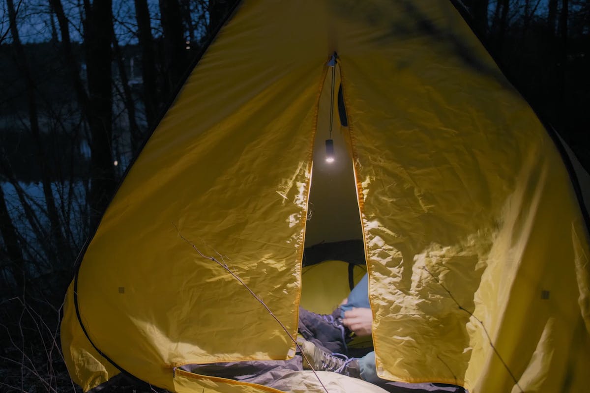 このライトは約120度のワイドビームを持っているため、一点を強く照らすのではなく、テント内全体をやさしく広く照らしてくれます。