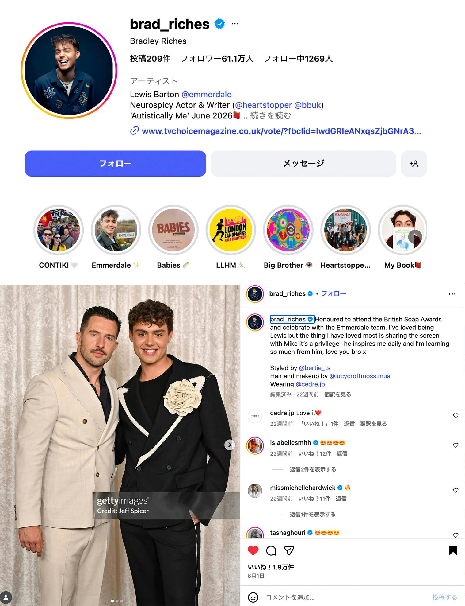 ↑セレブリティ着用 フォロワー60万人 イギリス人俳優Bradley Riches↑