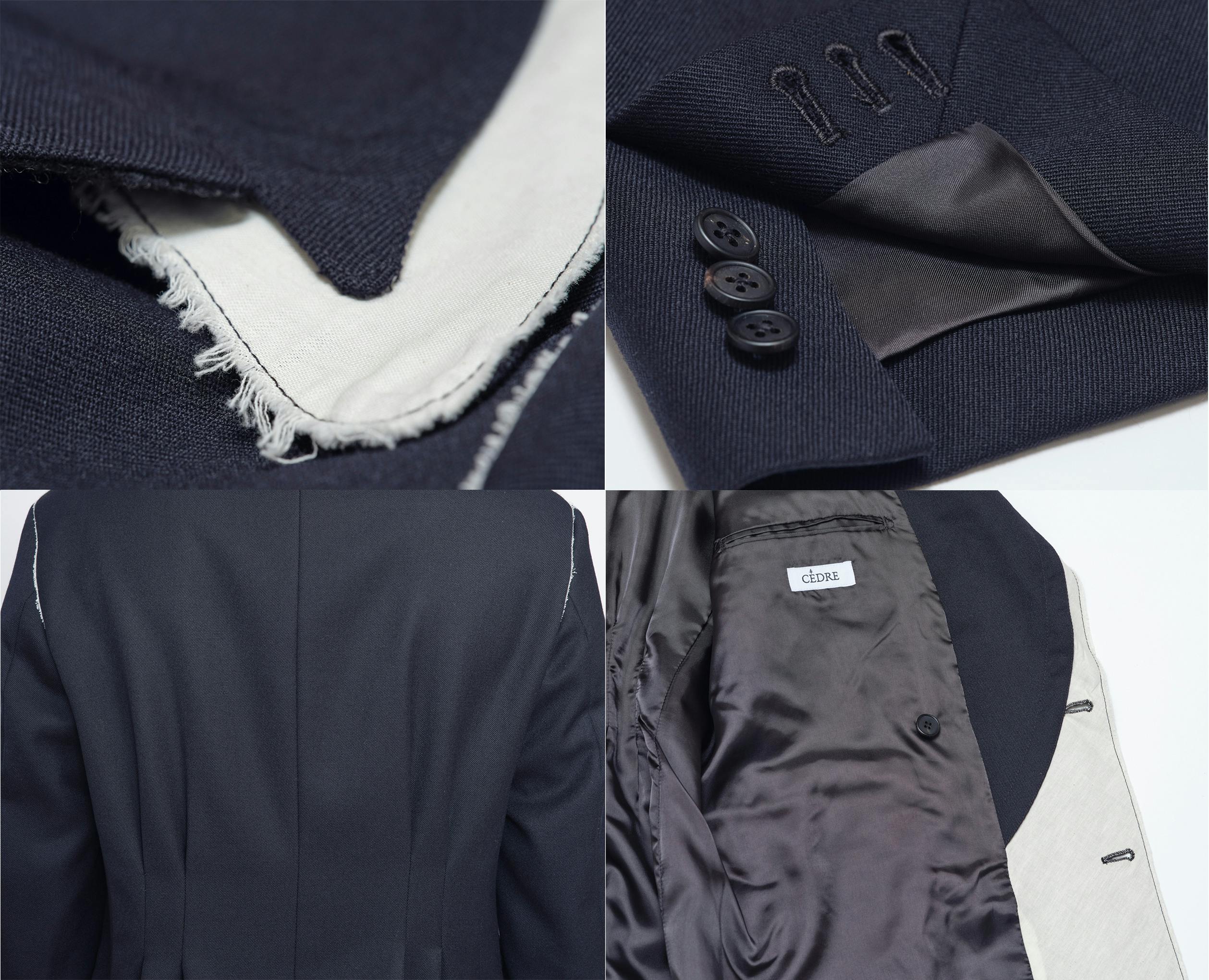 日本製の高密度バックサテンギャバジンを使用。厚みとしなやかなドレープ性を兼ね備え、シワになりにくい素材です。軽い汚れはブラッシングで簡単に落とすことができ、深みのある上品な光沢が特徴。テーラードウェアに最適な高級感と実用性を両立した最高品質のファブリックです。