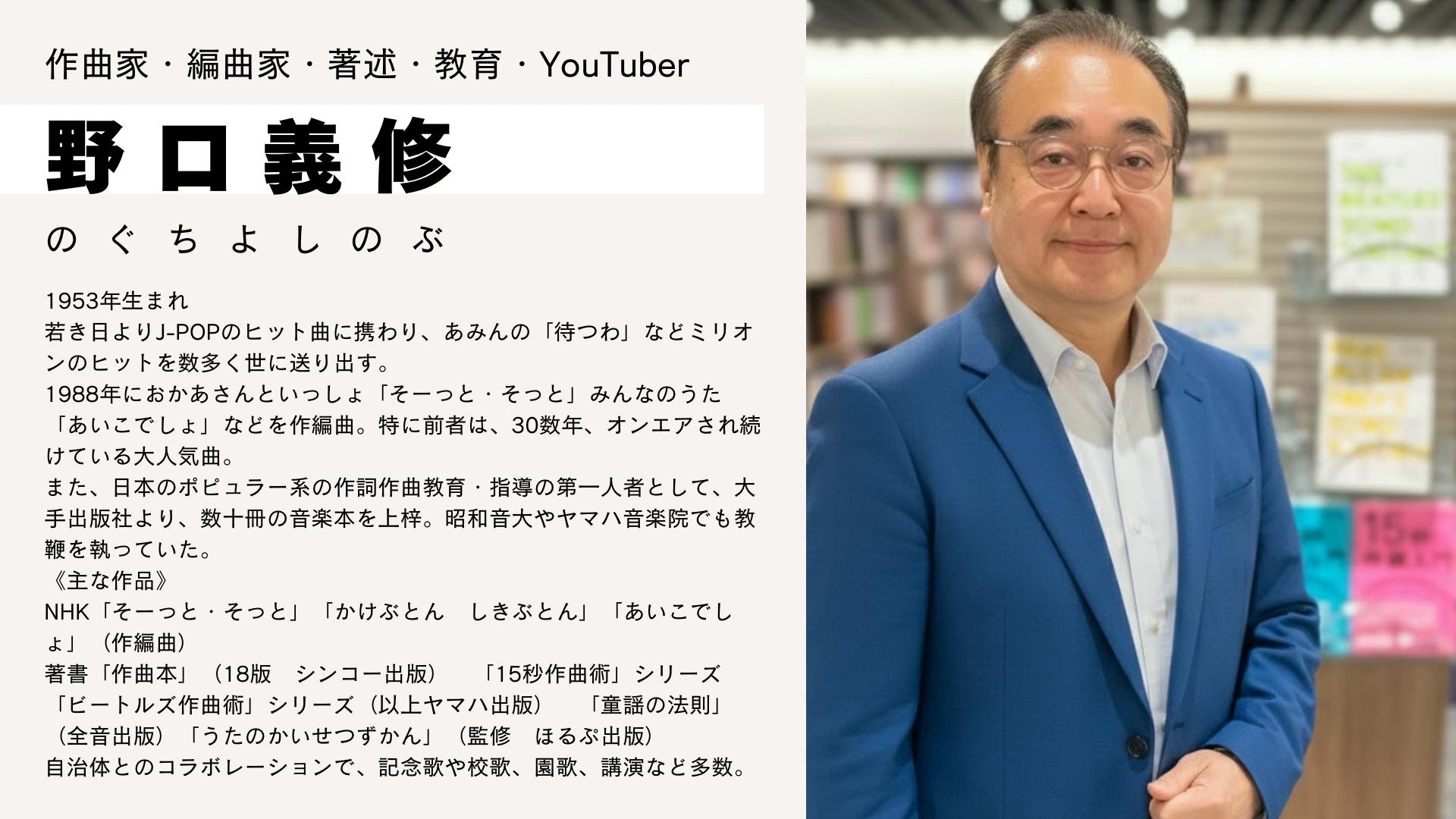 野口先生からも、すでに素敵な楽曲を歌詞付きでいただいています。