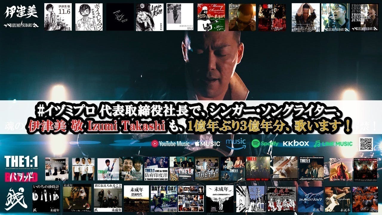 出演者:伊津美 敬 Izumi Takashi(株式会社IZUMI PRO 代表取締役社長、プロデューサー/プロモーター、語り手、シンガー/歌い手、作詞曲家、格闘ゲーマー)
