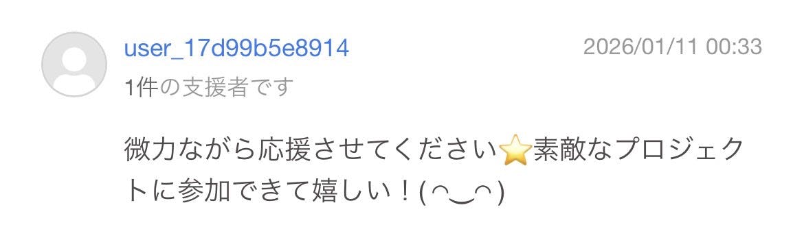 昨日一昨日と数字が思うように動かなかったのですが、今日は新たにご支援と嬉しいメッセージをいただきました。現在23名の方にご支援をいただき、59万5000円を達成しています。