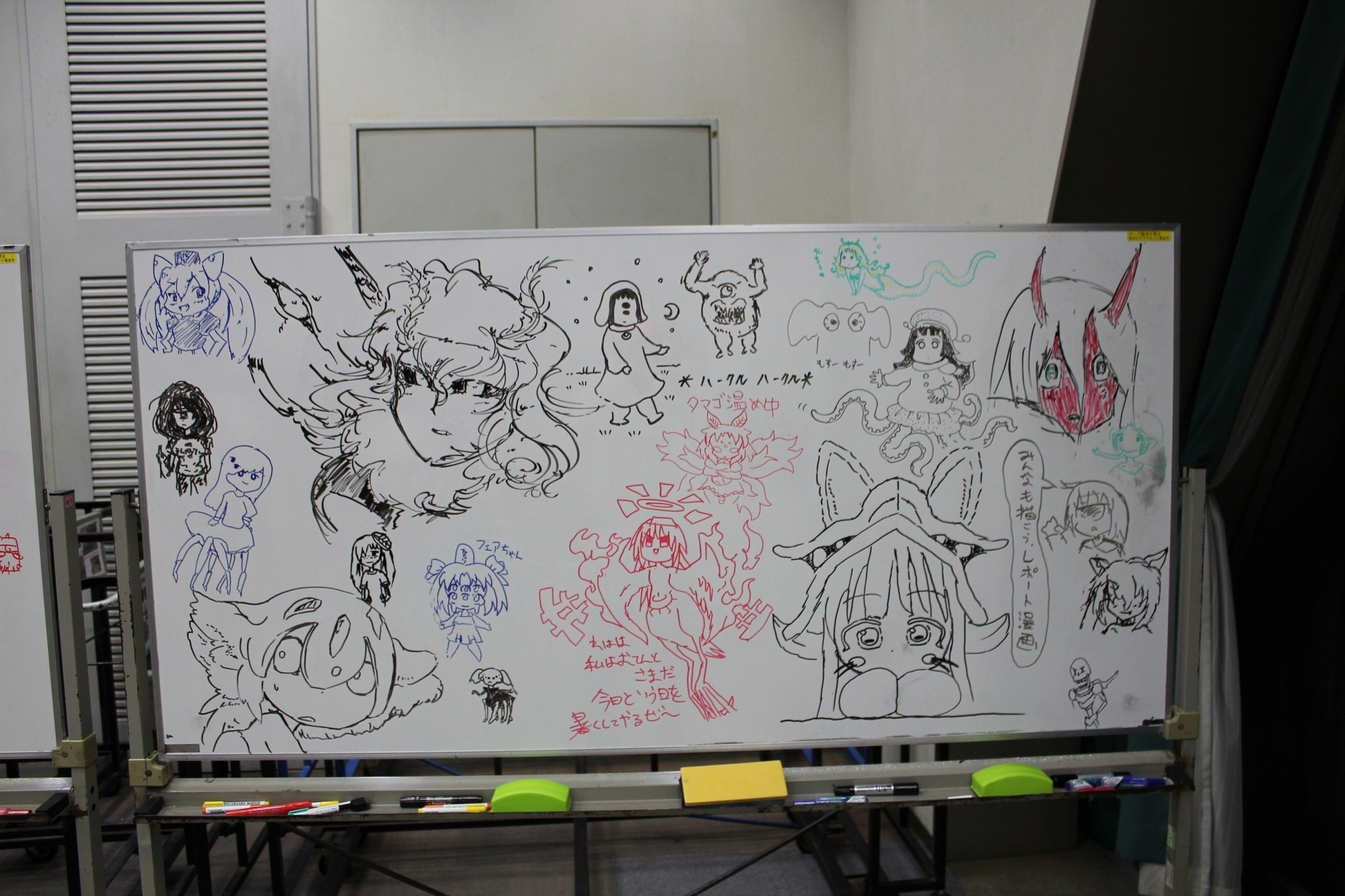(左は前回イベント当日に参加者によって自由にイラストが描かれたホワイトボード(5枚中の1枚)
