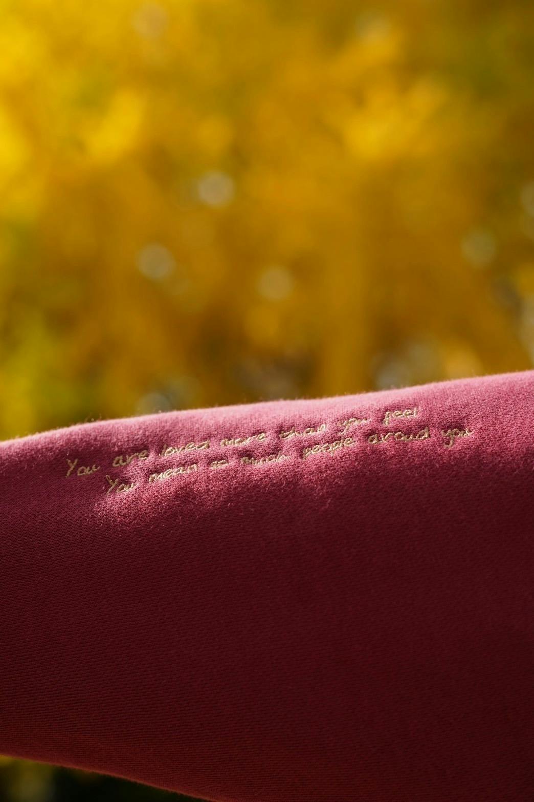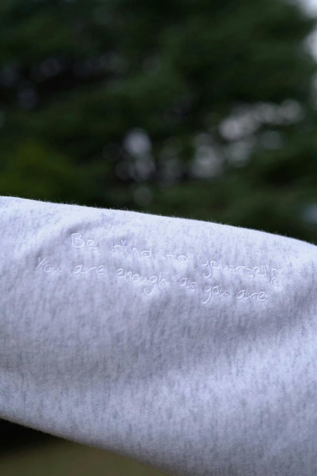 袖をまくるたび、ふと目に入る刺繍の言葉が、「今日も大丈夫」と小さく語りかけてくれる。