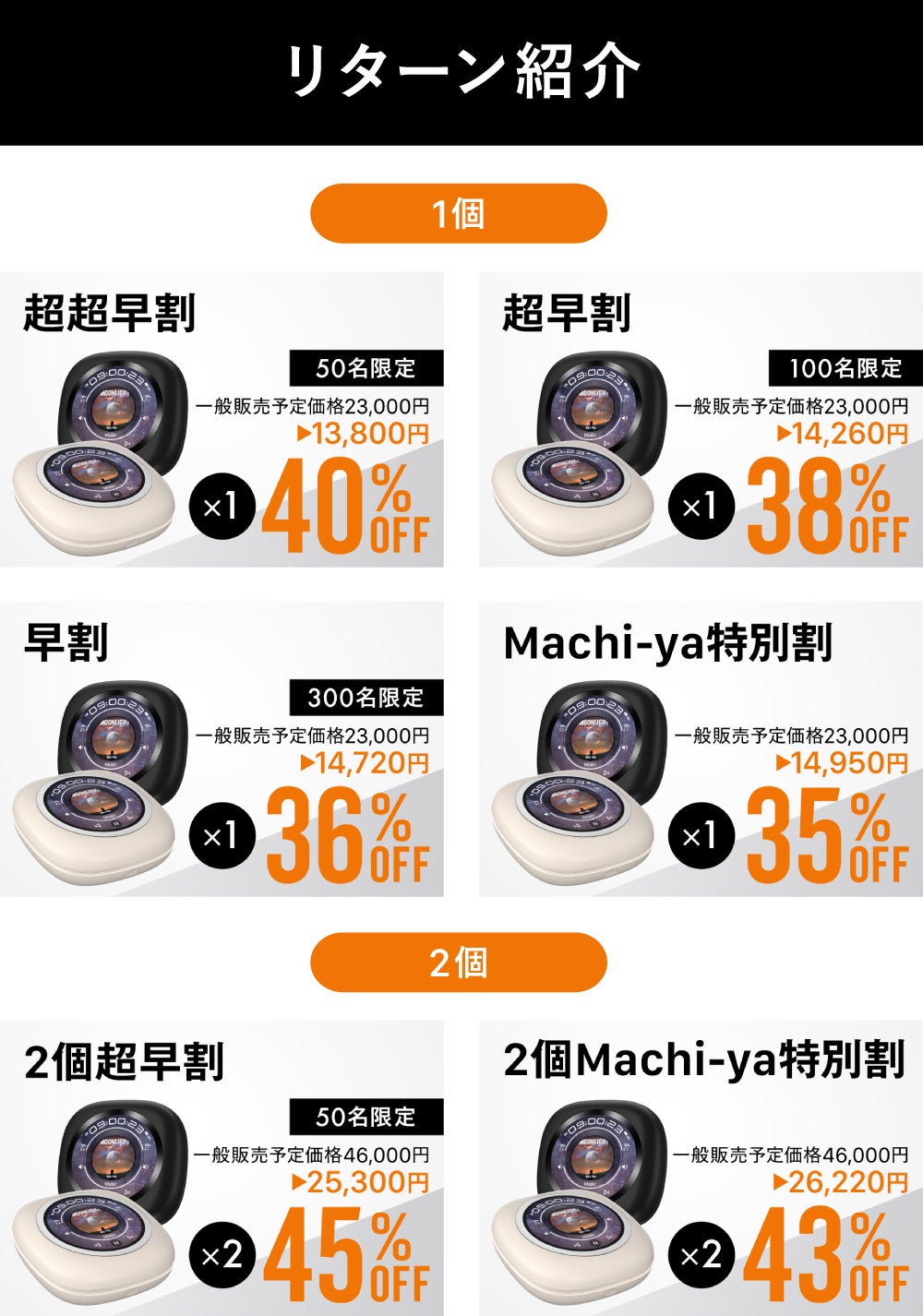 ●リターン価格:各リターン記載の通り *商品内容についてはリターン欄記載の通り