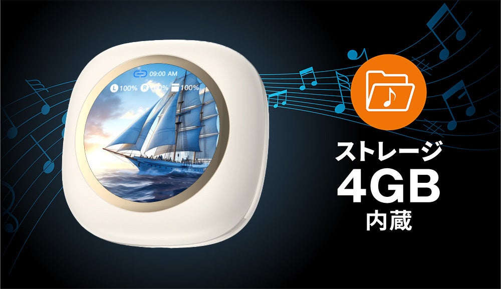 いつでもどこでも音楽を楽しみたい方なら、【AuraBuds X5L】のスマートウォッチは4GBのストレージを内蔵しているので、音楽のダウンロード&保存ができます。