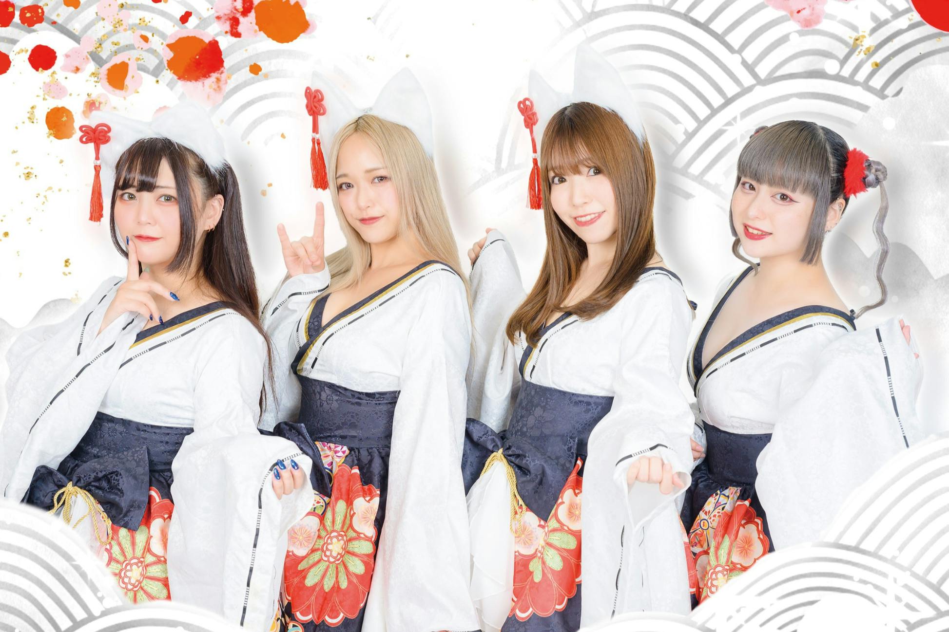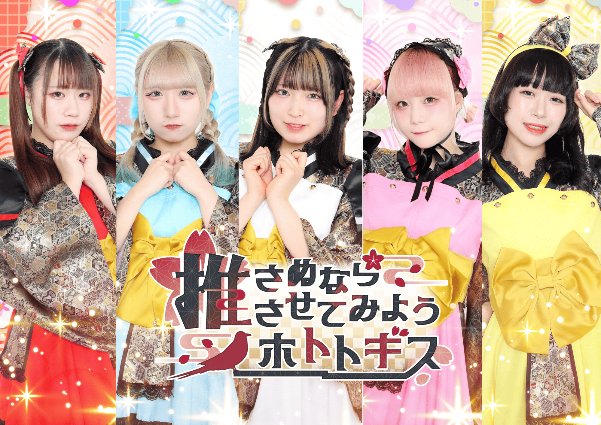 通称「推さホト」。2024年12月デビューの和風サブカル×戦国コンセプトユニットで、「令和の戦う唄姫たち」をテーマに、和装衣装でステージを盛り上げます。