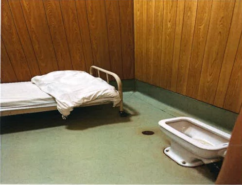 トイレの悪臭がする隔離室の中=2023年11月6日、宇都宮病院で撮影(西前啓子弁護士提供)