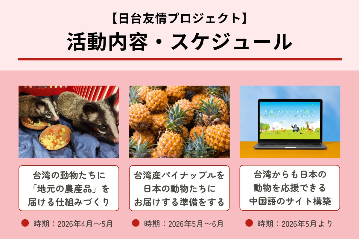 今回のプロジェクトを機に、台湾の皆さまにも動物たちの応援をしていただけるよう、中国語のサイトを構築します。二国間での動物たちへの食事のプレゼントを通じて、日本と台湾の交流機会も広げていきたいと考えています。