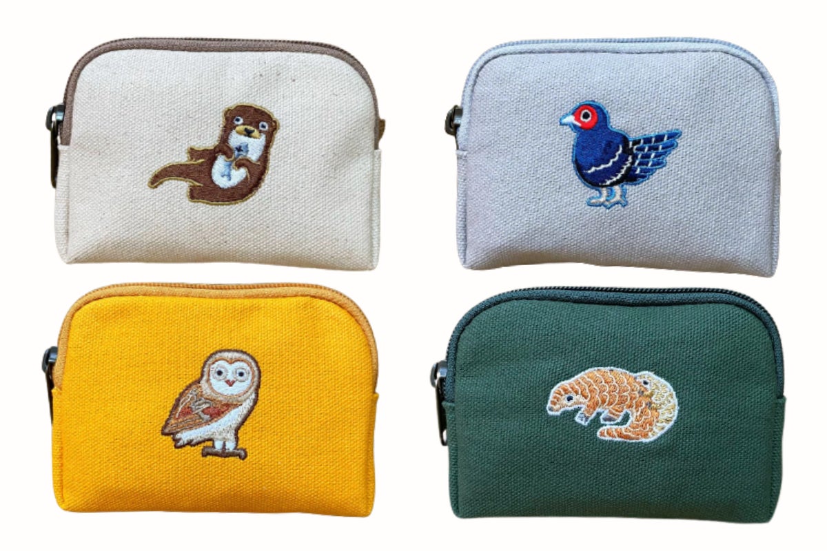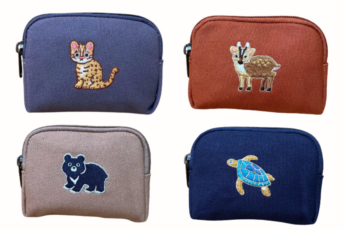 キャンバス生地に動物たちのワッペンの付いたコインケースです♪内側と外側にそれぞれポケットも付いています。