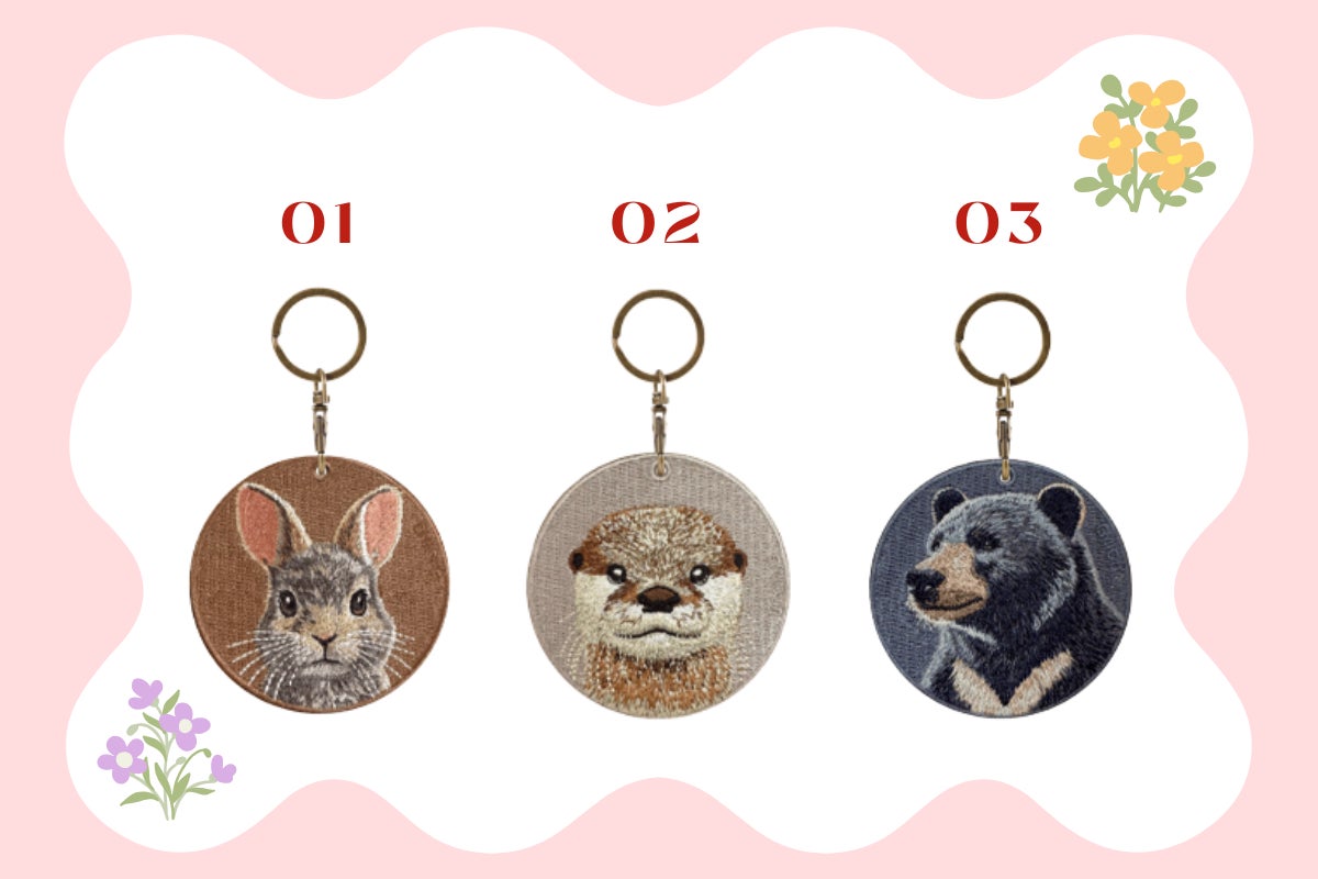 高級レーヨン刺繍糸を使用し、ほつれにくく、細部まで動物たちの表情が美しく再現された刺繍キーホルダーです♪