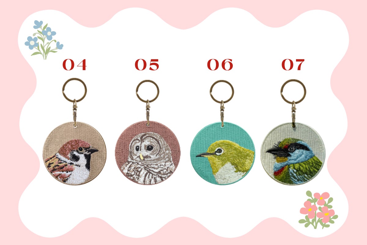 デザインは7種類からお選びいただけます。皆さまの好きな動物たちが、刺繍キーホルダーとしてお出かけやお仕事にお供させていだけますと嬉しいです!