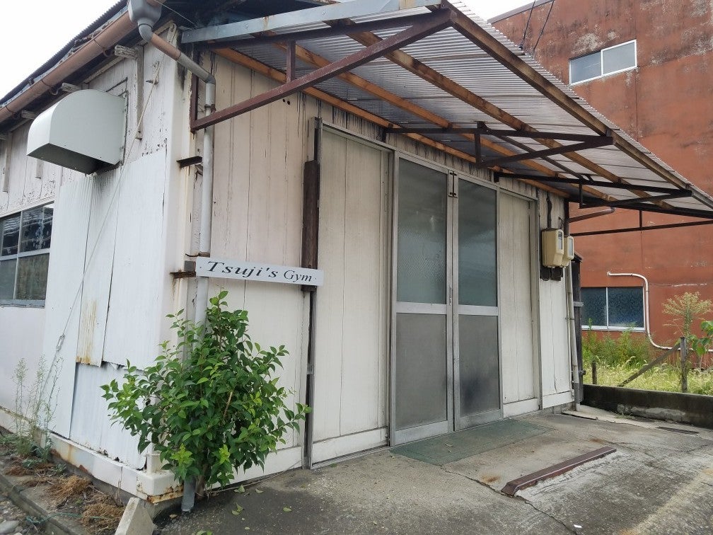 写真は町工場跡を利用した今のジムの外観と中の様子です。写真のごとく器具が種目別に1台づつしかなく現在はホームジムの状態です。