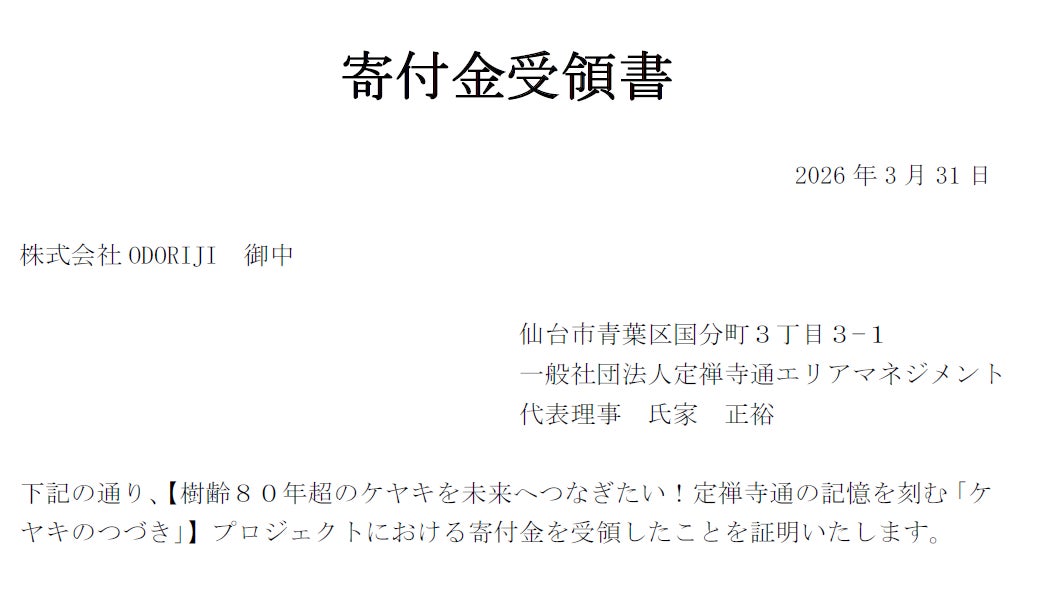 2026/04/05 17:49ご支援いただいた皆様、いつも温かい応援をありがとうございます。本日は、「ケヤキのつづき」プロジェクトにおける寄付の完了についてご報告いたします。皆様からいただいた大切なご支援の中から、2026年3月31日付で「一般社団法人定禅寺通エリアマネジメント」様へ寄付を実施いたしました。<寄付の詳細>寄付先: 一般社団法人定禅寺通エリアマネジメント寄付金額: 161,674円 受領日: 2026年3月31日 寄付者: 株式会社 ODORIJI ※本投稿に添付しております「寄付金受領書」も併せてご確認ください。皆様の想いが、定禅寺通の美しいケヤキ並木の記憶を未来へつなぐ活動へと確実に結実いたしました。本プロジェクトにご賛同・ご支援いただいた皆様に、改めて心より感謝申し上げます。本寄付金は、市民の活動を後押しする、定禅寺通まちづくり基金助成などに活用されます。<リターン品の製作状況について>皆様へお届けするリターン品の製作も現在随時進めております! 一つひとつ丁寧に、心を込めて形にしておりますので、お手元に届くまでもうしばらくお待ちいただけますと幸いです。「壁掛け時計」についても職人が効率の良い制作方法を工夫し、なるべく早くお届けできるように進めております(製作途中の画像をお送りします)。引き続き、「ケヤキのつづき」プロジェクトをよろしくお願いいたします! もっと見る