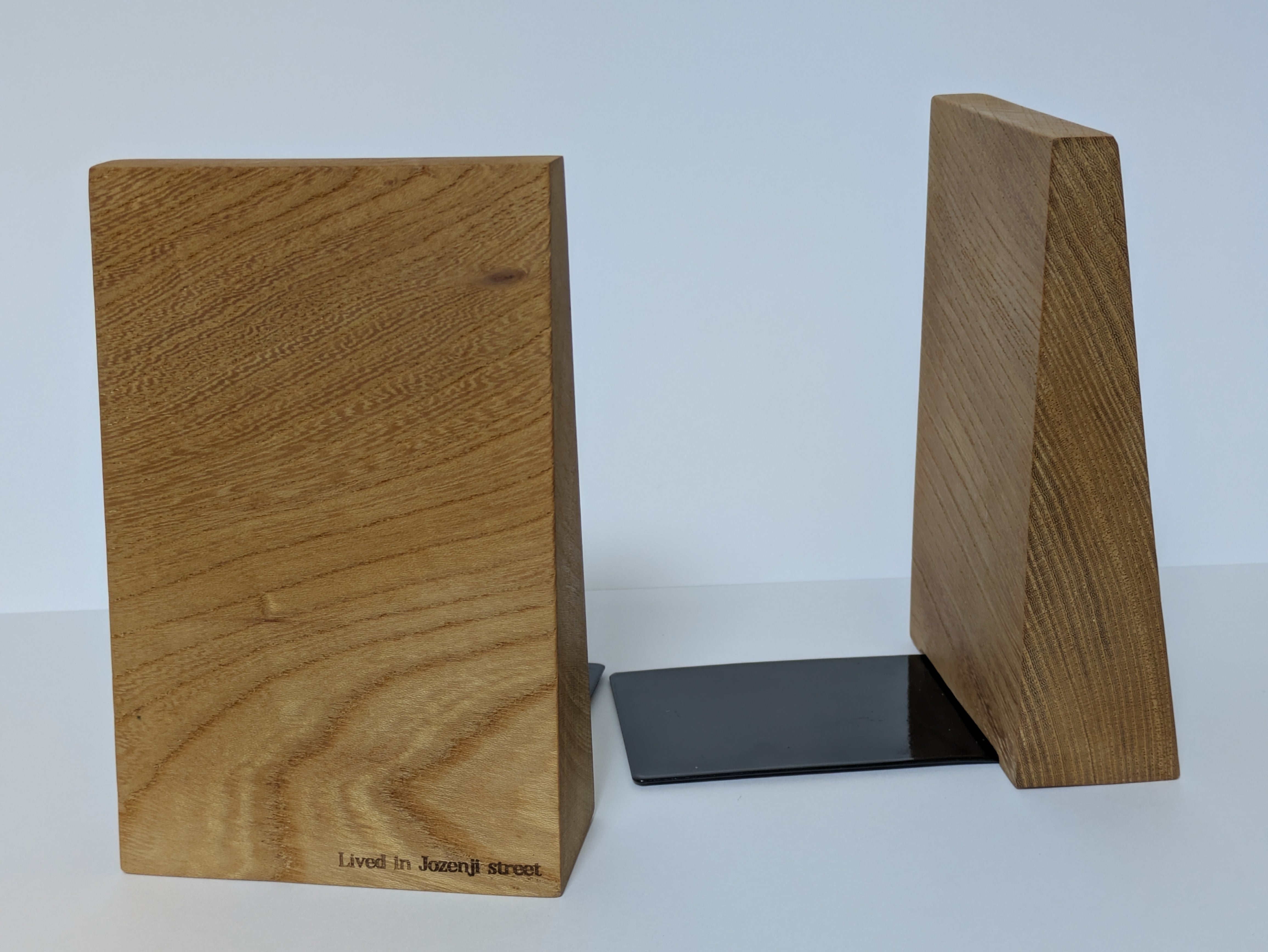 本を置くと金具はほとんど隠れてしまい、まるで「木の塊」が自立しているような美しい佇まいになります。