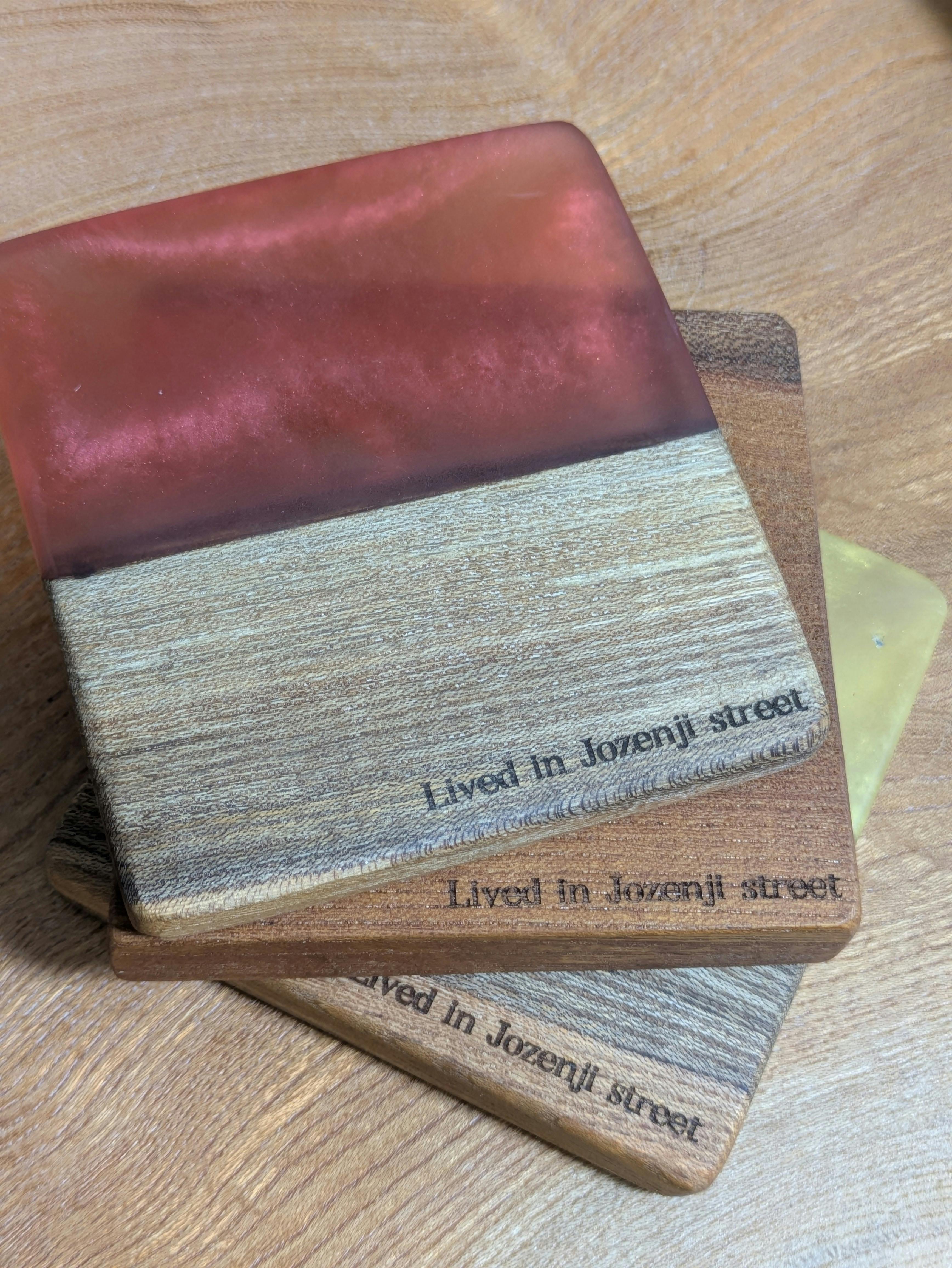 ① 定禅寺ケヤキのコースター(無垢・レジン)