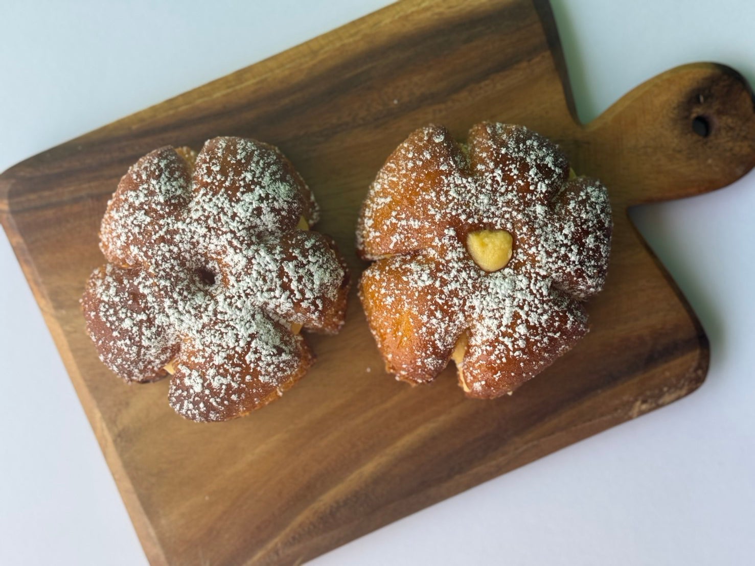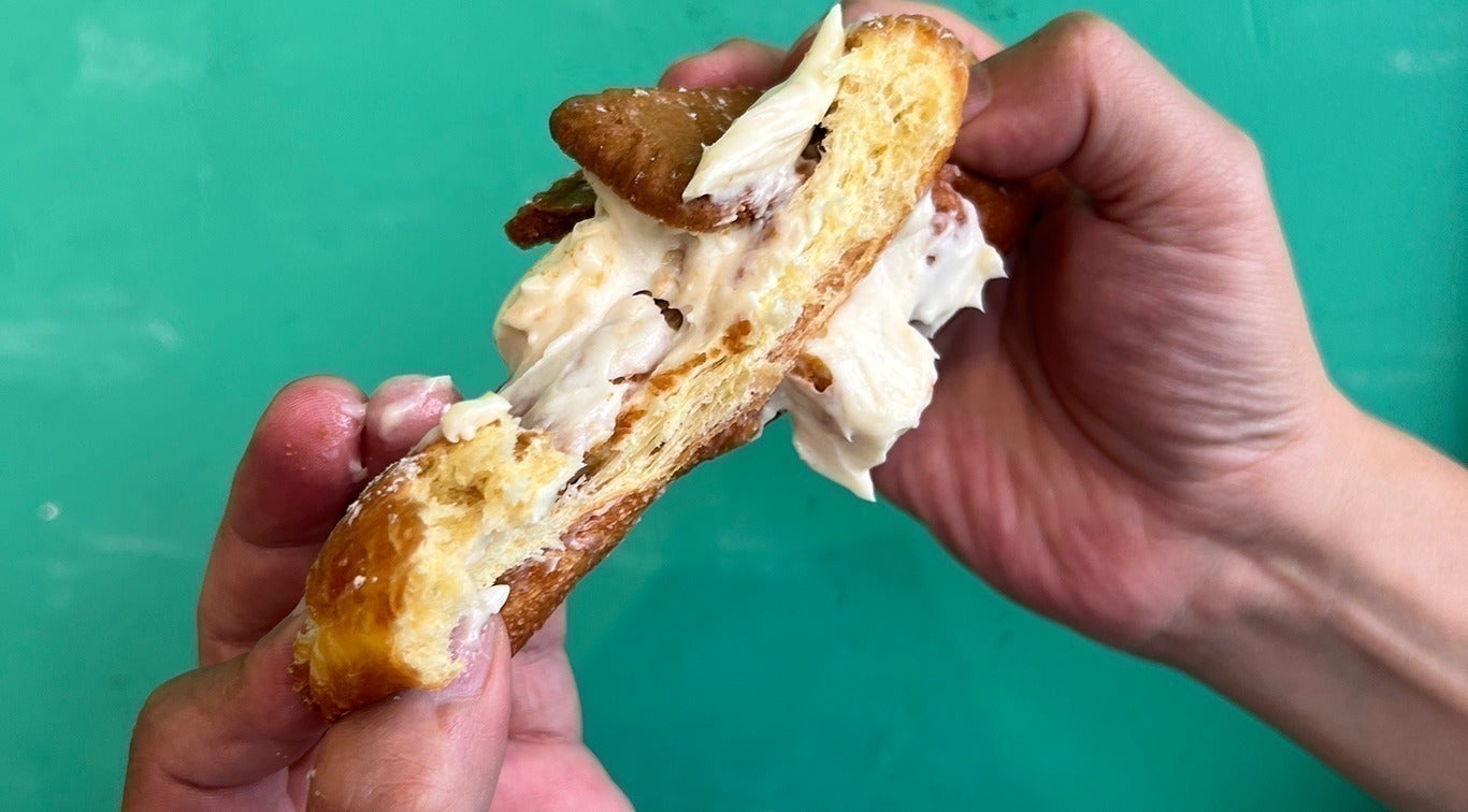 花形にしたドーナツにはちみつとバターをたっぷり染み込ませ、カスタードを挟んだドーナツ