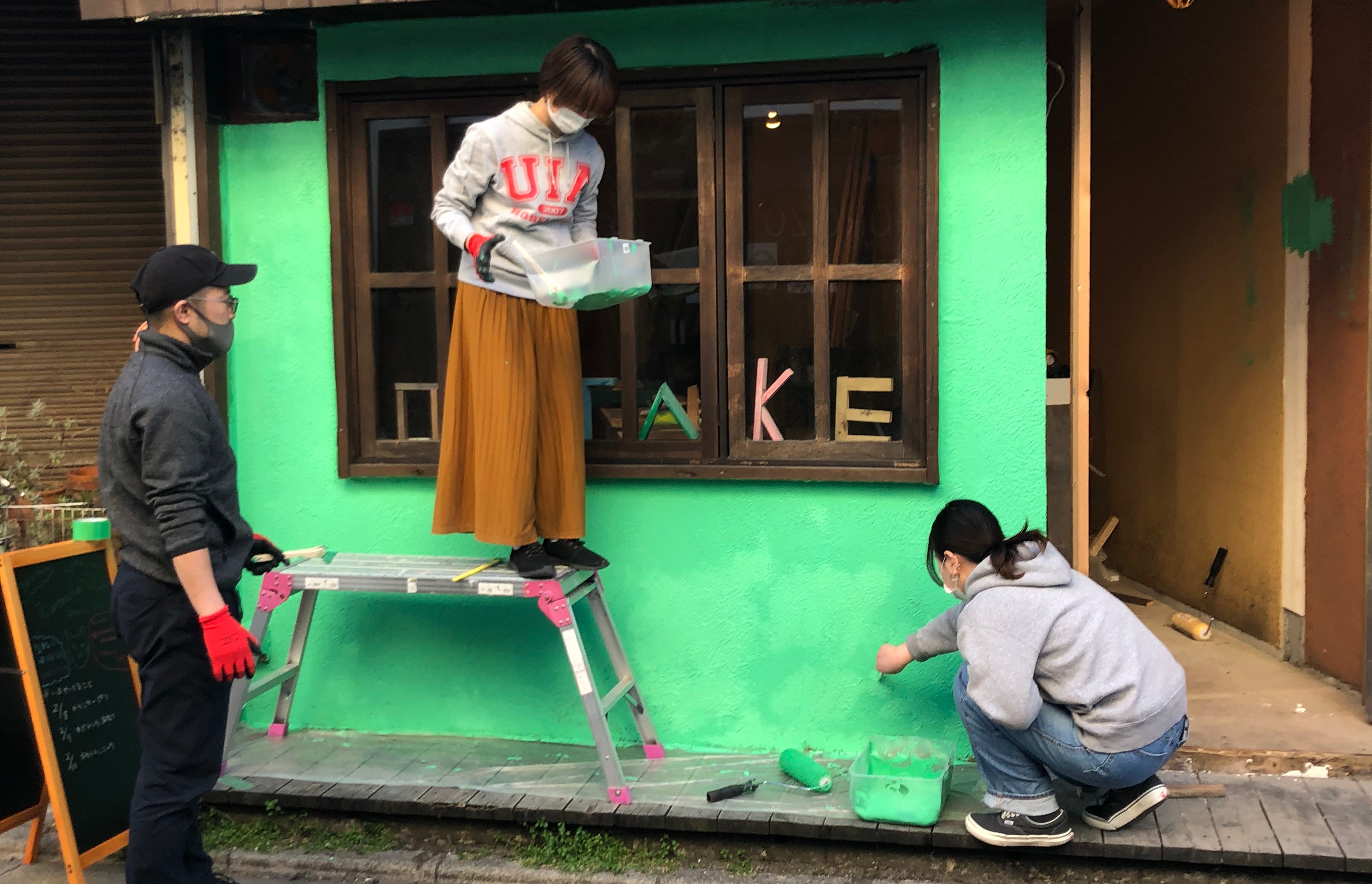 最高のドーナツの味への情熱はもちろんですが、建築士としての専門的なノウハウを活かし、店舗づくりを自分たちとボランティアで行い、驚くほどの低コストで実現してきました。